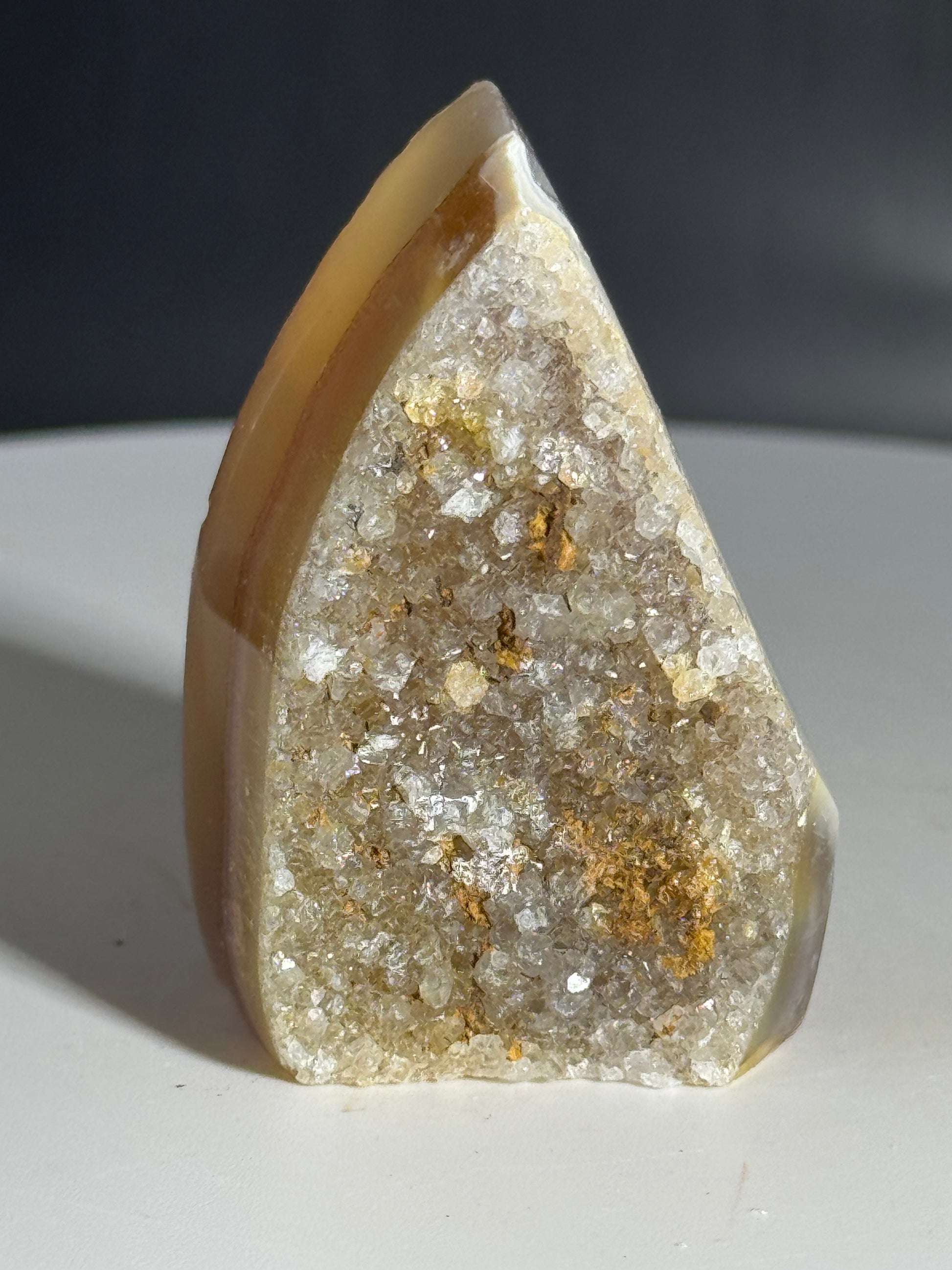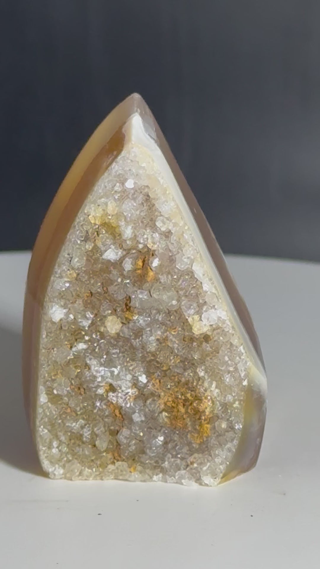 Discover the captivating beauty of this Agate Geode from Brazil, renowned for its unique banded patterns and vibrant colors. Perfect as a decorative piece or a spiritual tool, it brings natural elegance and positive energy to any space. Each geode is a one-of-a-kind treasure, showcasing the raw power of nature preserved in stone. Elevate your collection or gift a stunning reminder of the earth’s artistry with this agate geode.