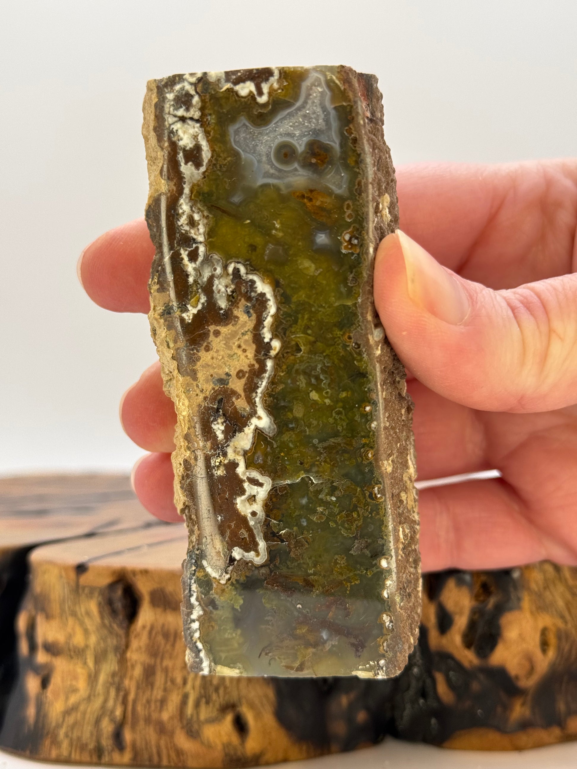 Experience the luxury and sophistication of our Agate Slab. This stunning piece features a rare mossy agate, adding a natural and artistic touch to any space. Elevate your decor with this exclusive and elegant agate slab.