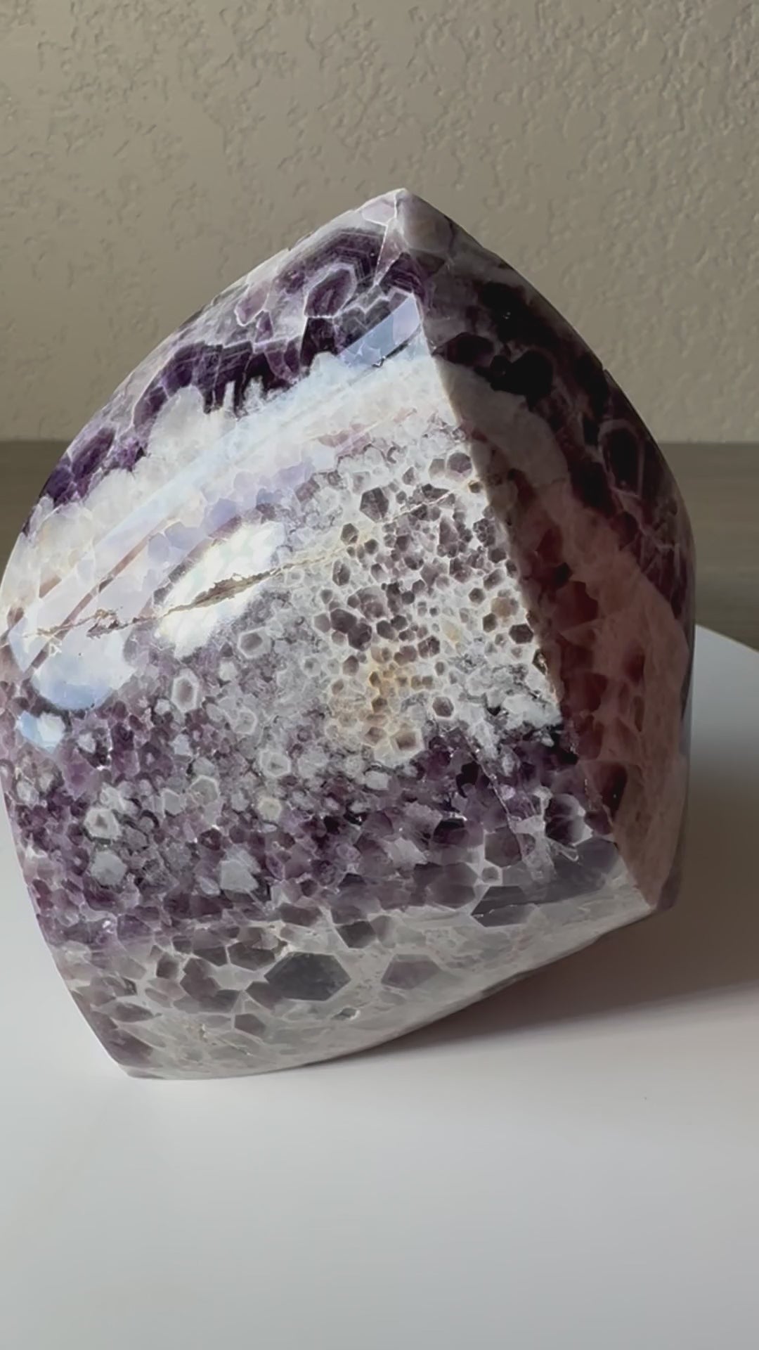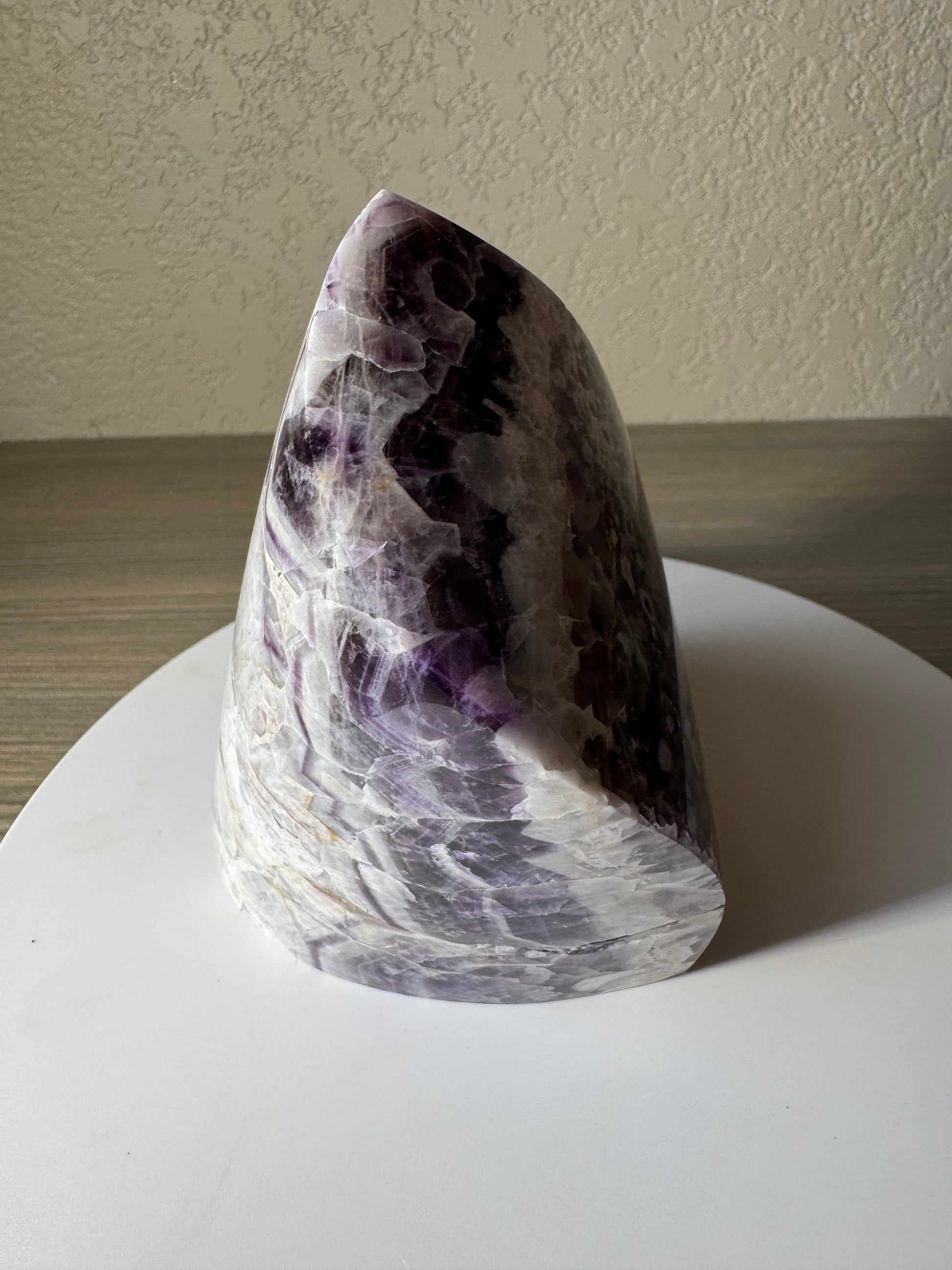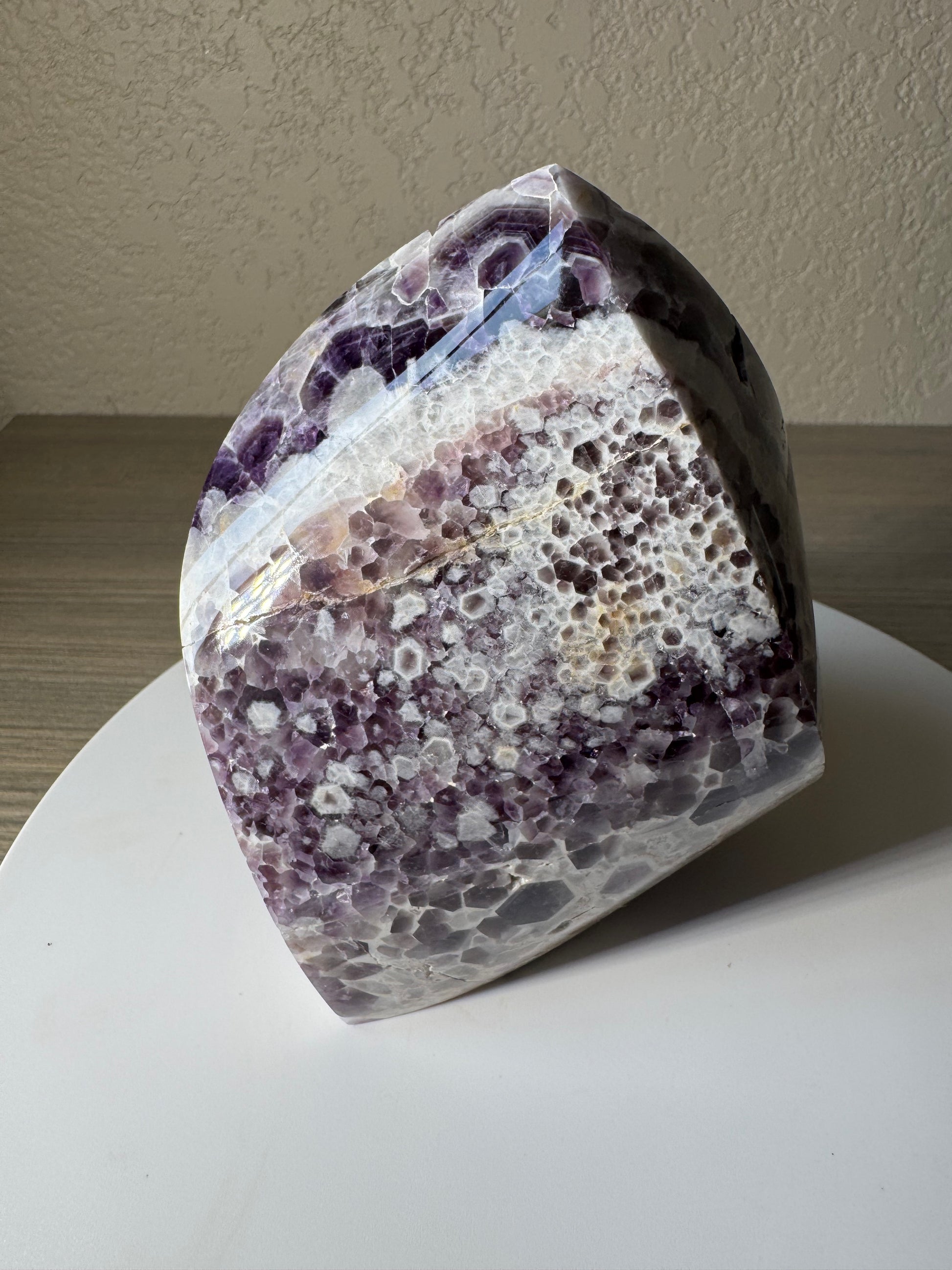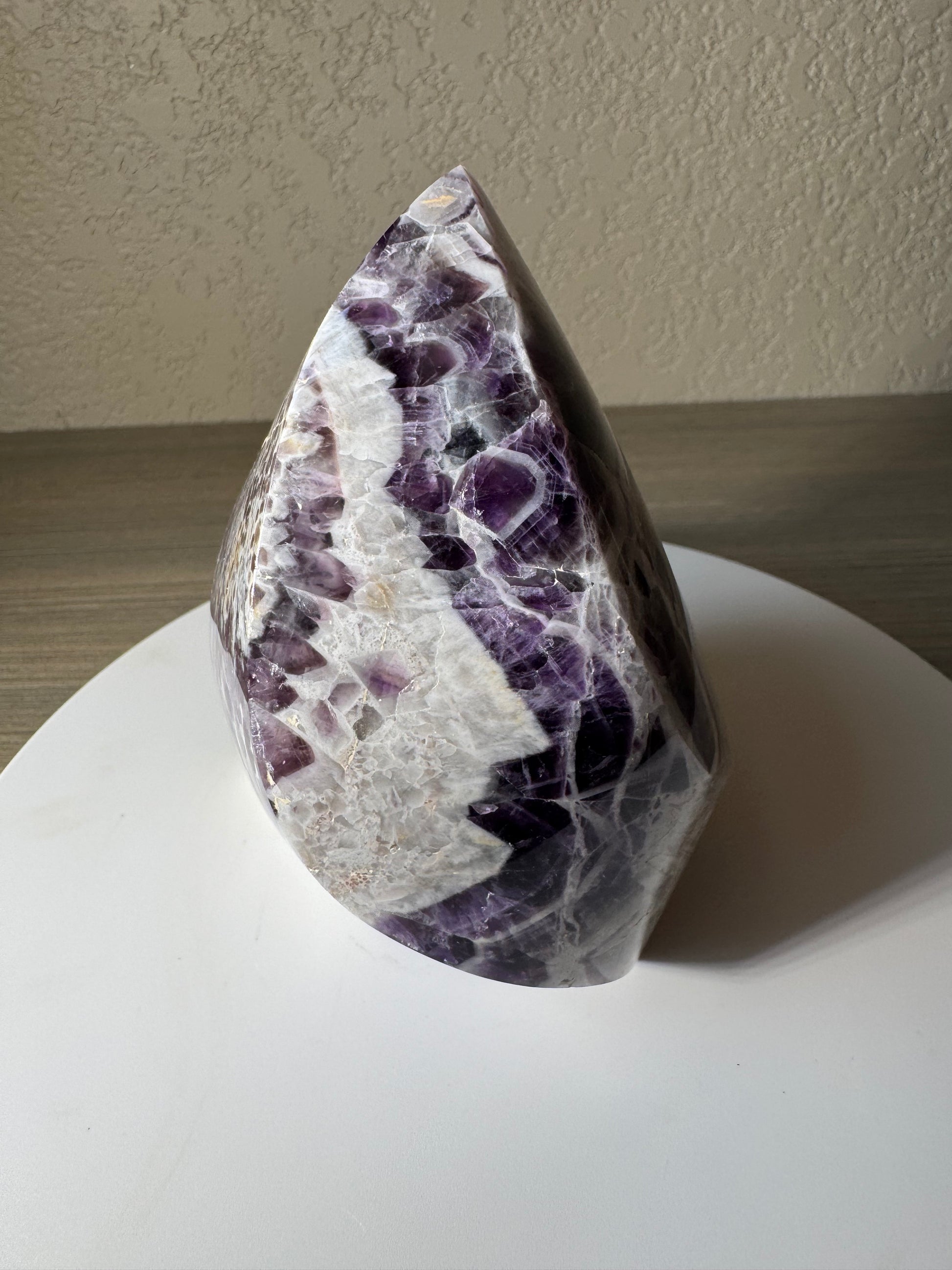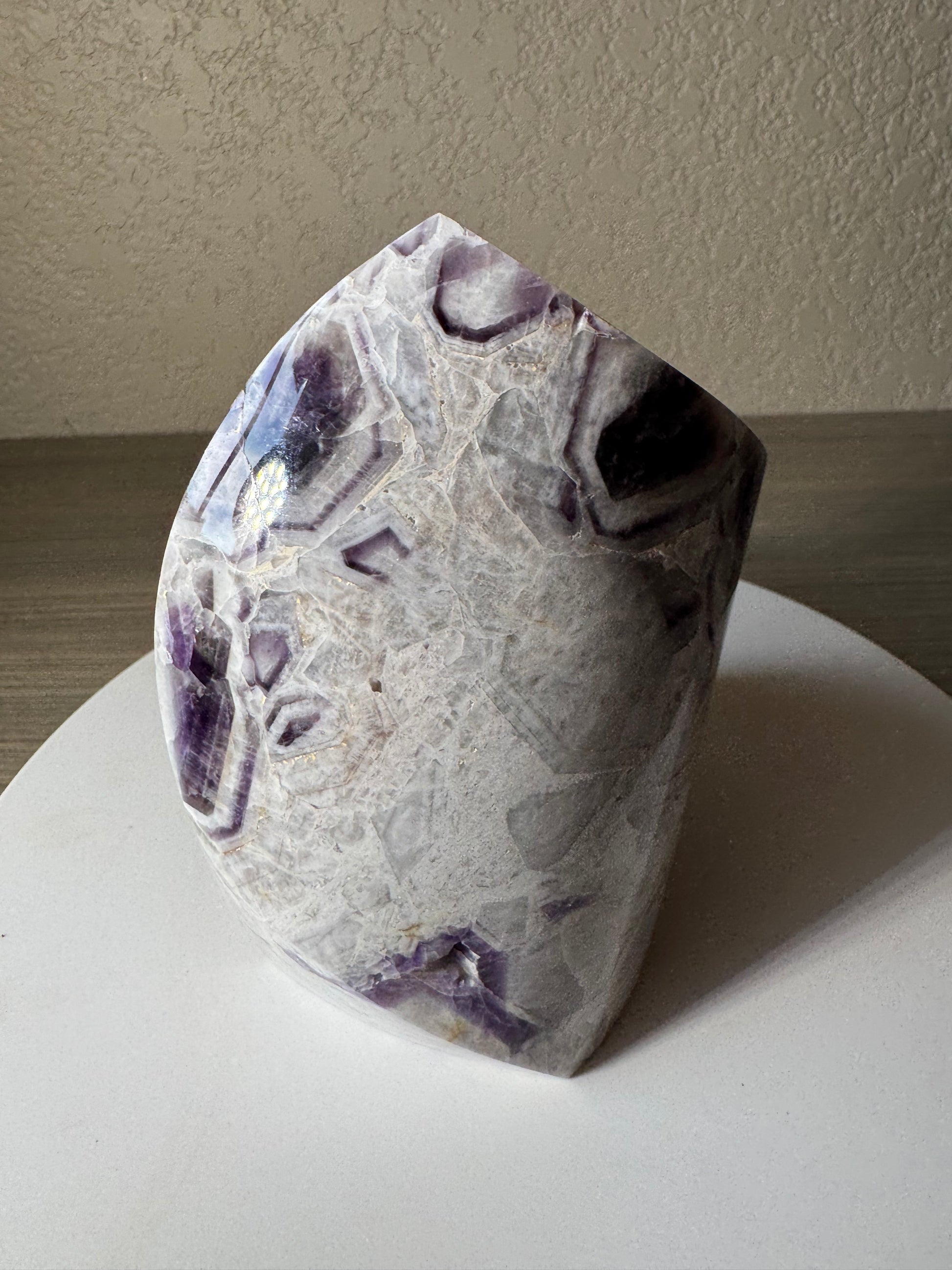Discover the captivating beauty of the Chevron Amethyst Freeform, a unique crystal that combines the calming energy of amethyst with striking chevron patterns. Perfect for enhancing your meditation or adding a touch of natural elegance to your space, this freeform stone promotes clarity, balance, and spiritual growth. Its distinctive shape and vibrant hues make it a standout piece for collectors and crystal enthusiasts alike. Elevate your environment and well-being with this powerful and visually stunning amethyst freeform.