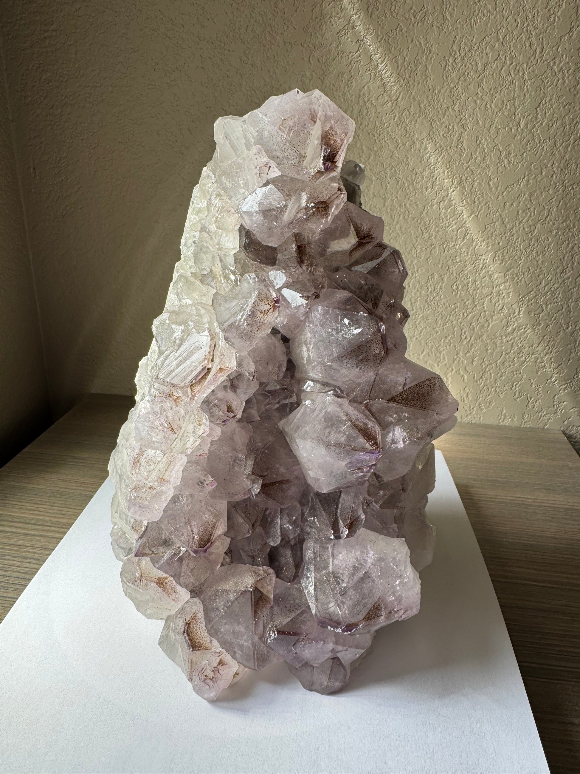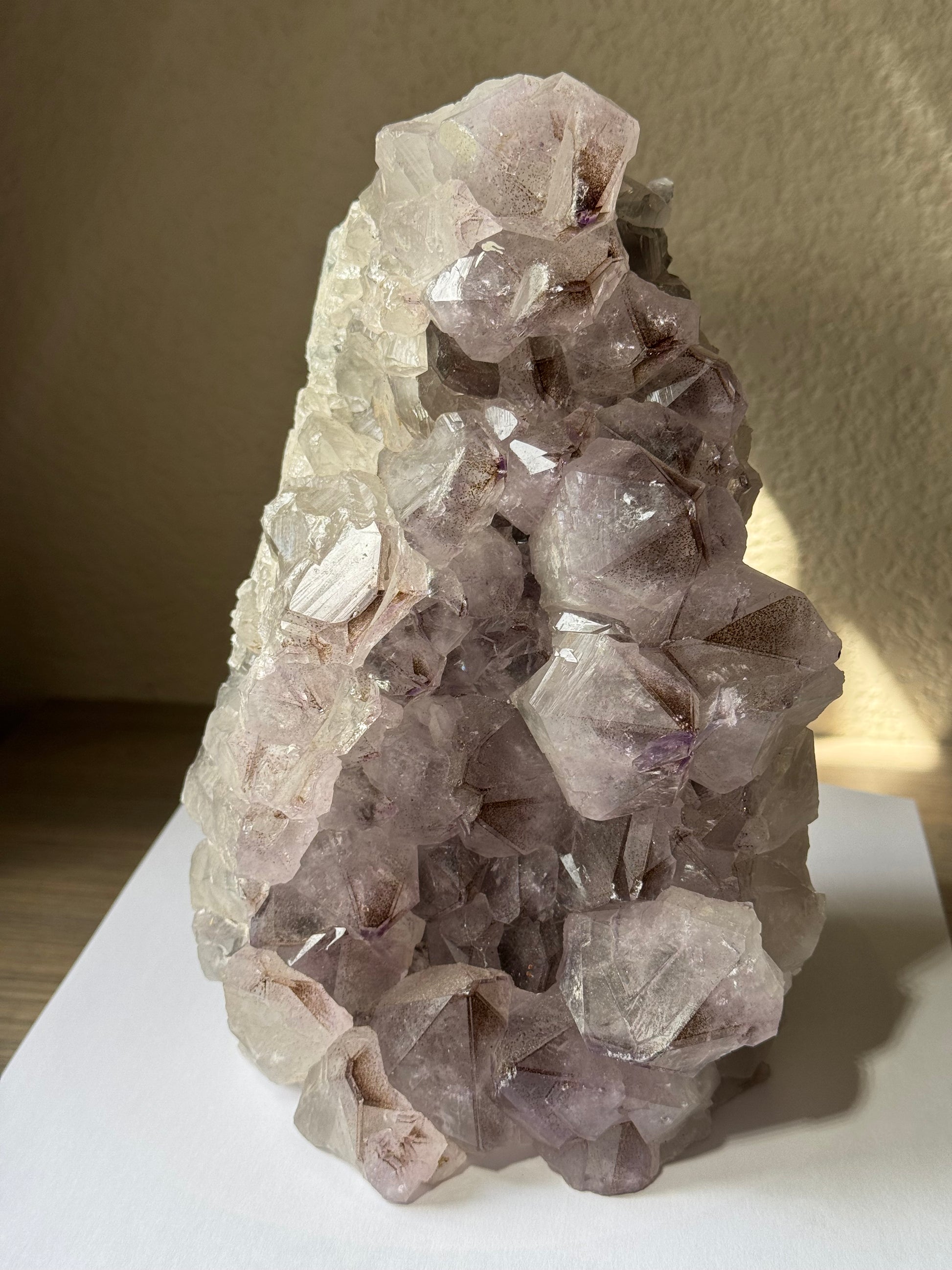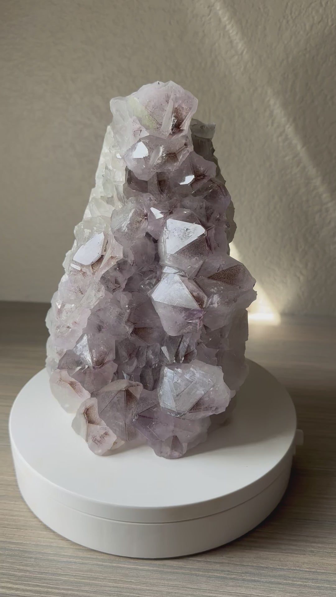 Discover the captivating beauty of this 8.8-pound Amethyst Cluster with Phantoms from Brazil. Its thick, richly colored crystals showcase natural phantom formations, adding depth and intrigue to any collection or space. Perfect for enhancing your environment with calming energy and stunning visual appeal, this unique specimen is a powerful centerpiece for both crystal enthusiasts and interior decor lovers. Elevate your space with the natural elegance and positive vibes of this remarkable amethyst cluster.