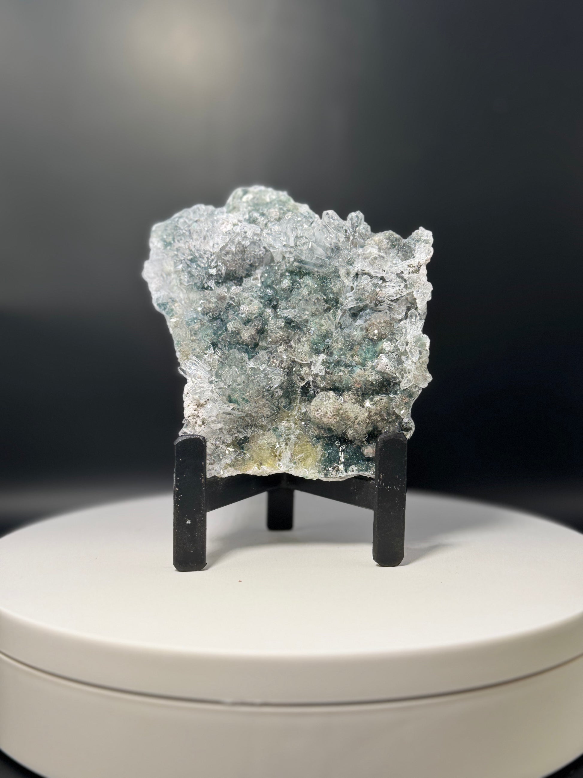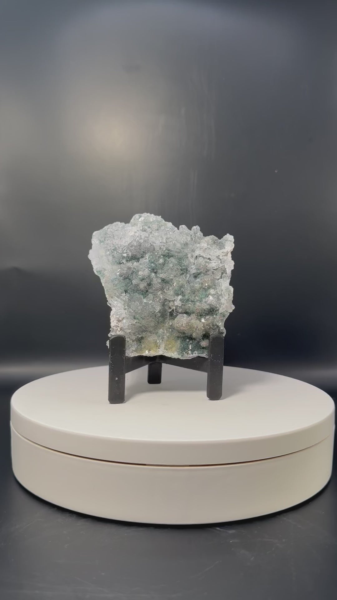 Discover the breathtaking beauty of this authentic Brazilian Amethyst Flower, elegantly displayed on a custom stand. Each crystal formation showcases nature's artistry with vibrant green hues that catch the light magnificently. This statement piece not only adds a touch of luxury to any space but also brings the calming, protective energies amethyst is renowned for. A truly unique treasure for collectors and interior design enthusiasts alike.