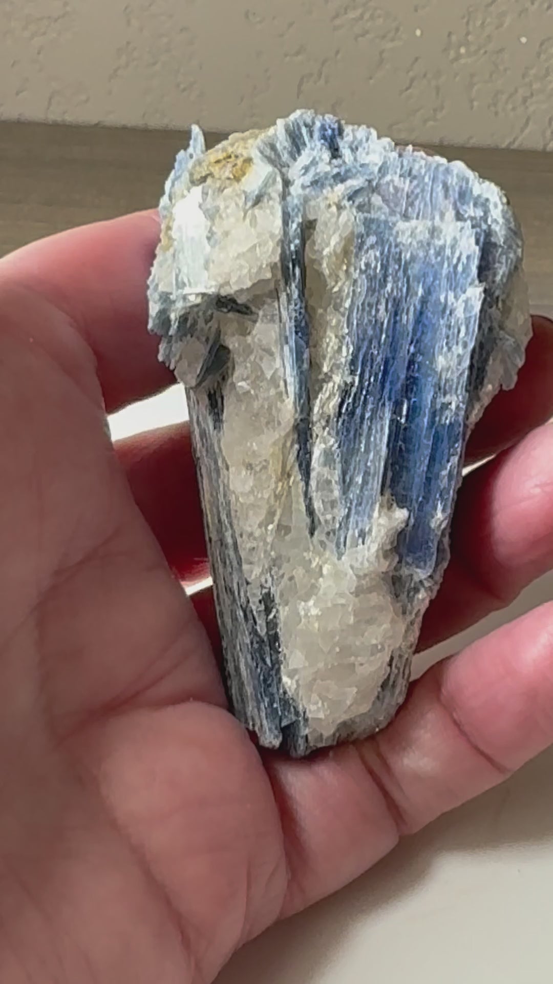 Elevate your space with this stunning Blue Kyanite Crystal from Brazil. Known for its calming energy and striking blue hues, this crystal not only enhances your décor but also promotes balance and clarity. Perfect for meditation or as a unique centerpiece, it brings natural beauty and positive vibes into any room.