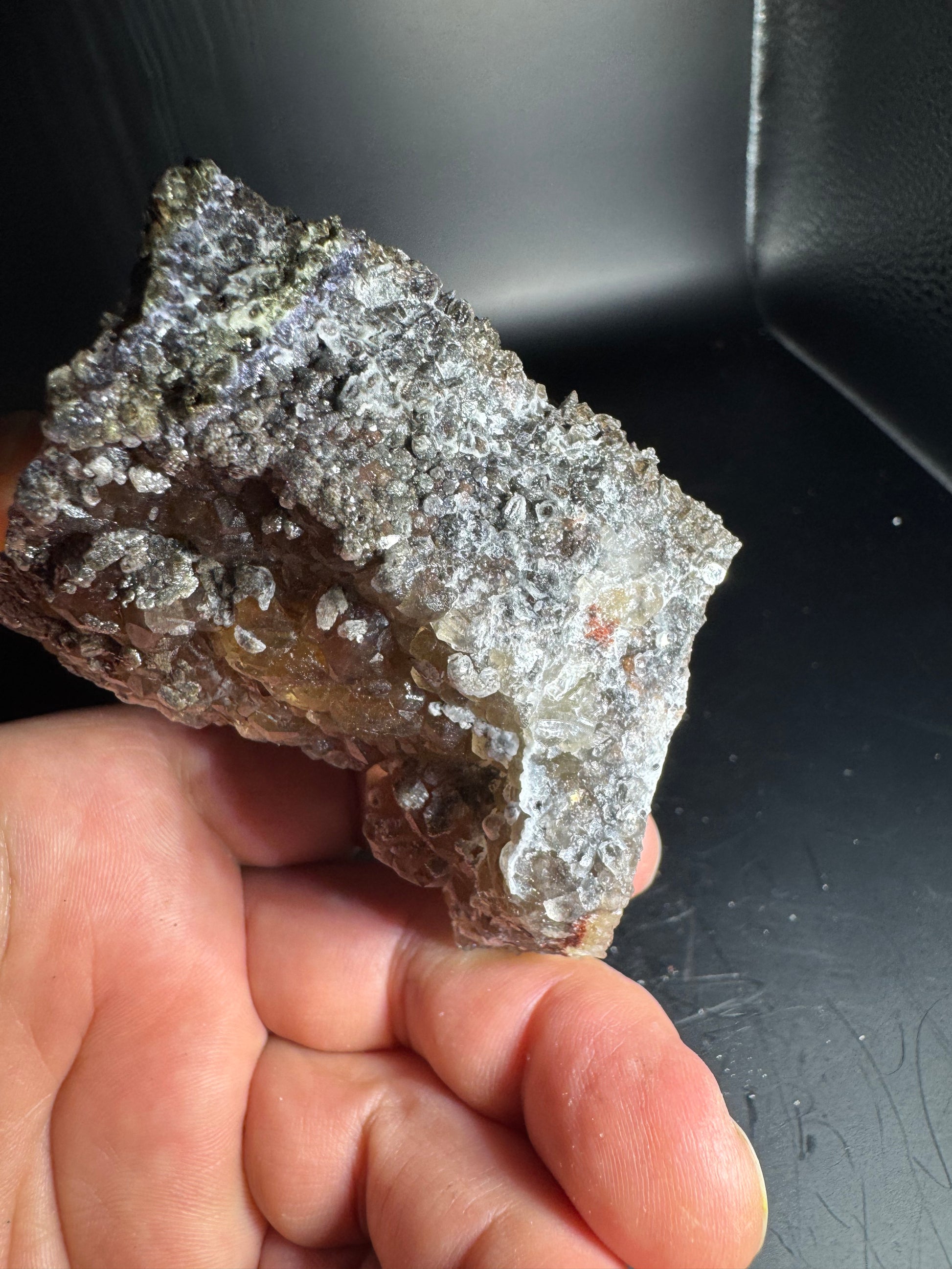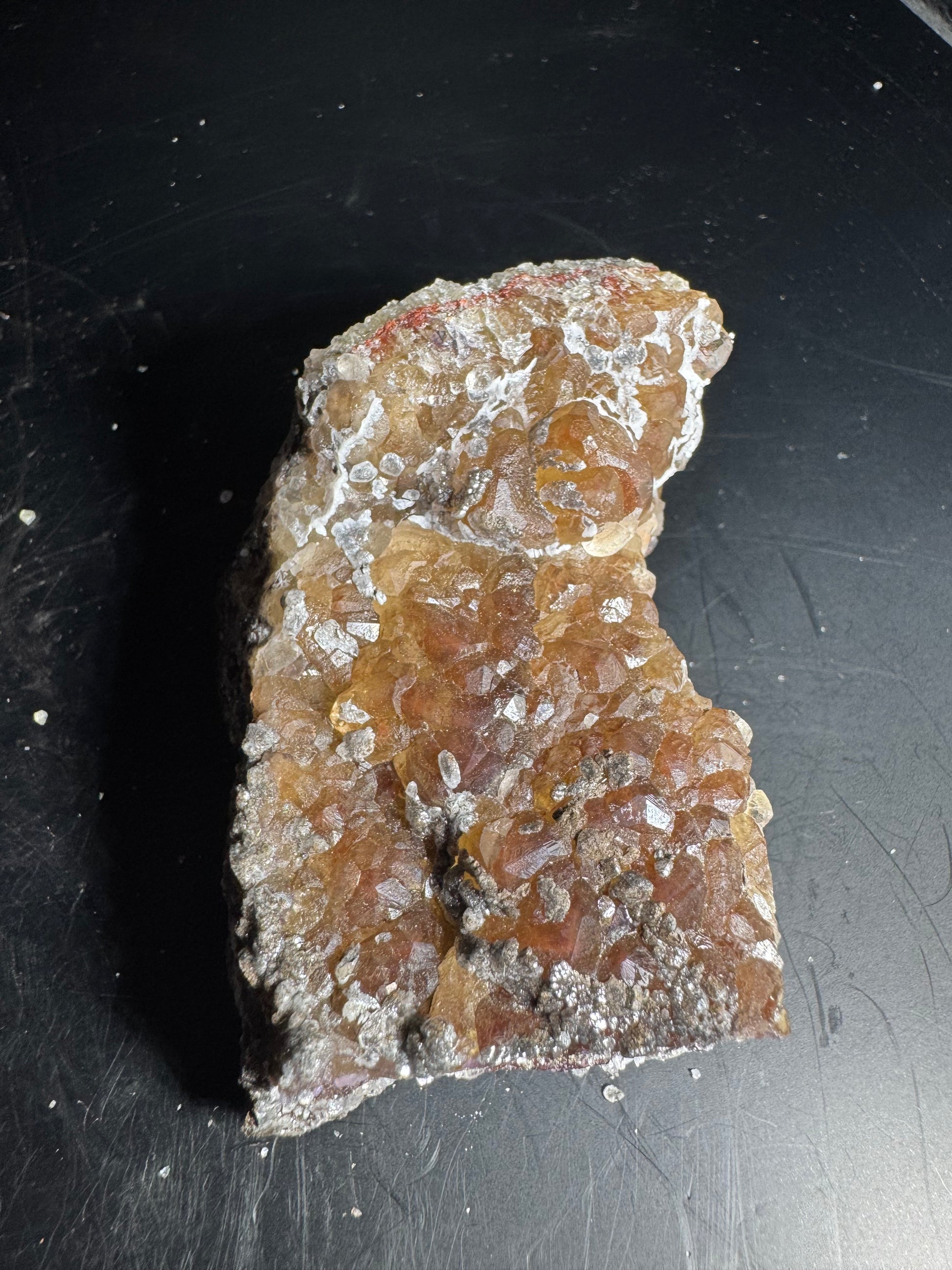 Discover the captivating beauty of this large botryoidal red fluorite from the San Antonio Mine in Santa Eulalia, Mexico. Weighing 205 grams, its rich red hues and smooth globular formations create a stunning display piece perfect for collectors and crystal enthusiasts. This unique specimen not only adds vibrant natural color to any space but also offers a tactile experience that draws the eye and invites admiration. Embrace a rare treasure that combines raw mineral elegance with powerful visual impact. Has glittery calcite on opposite side.