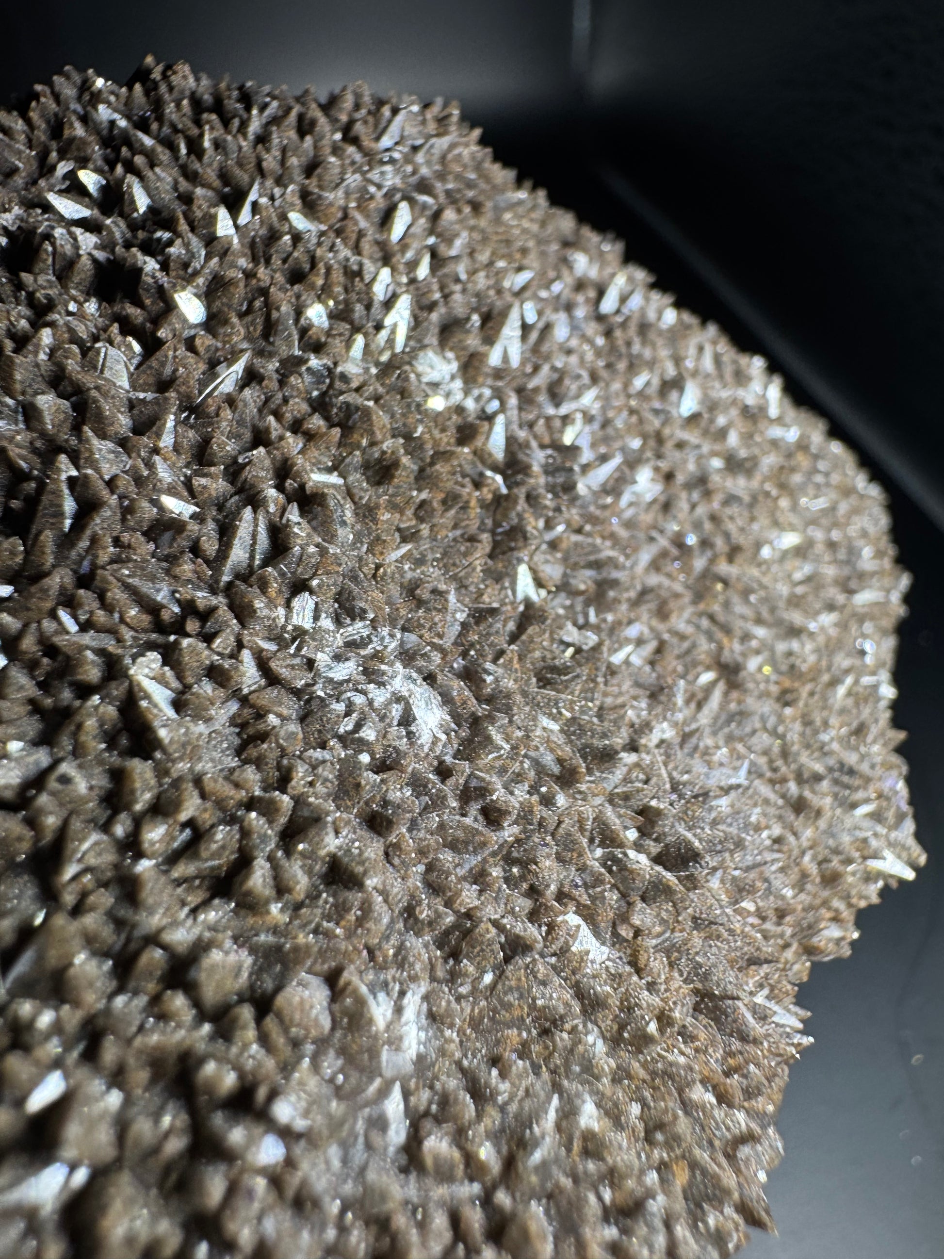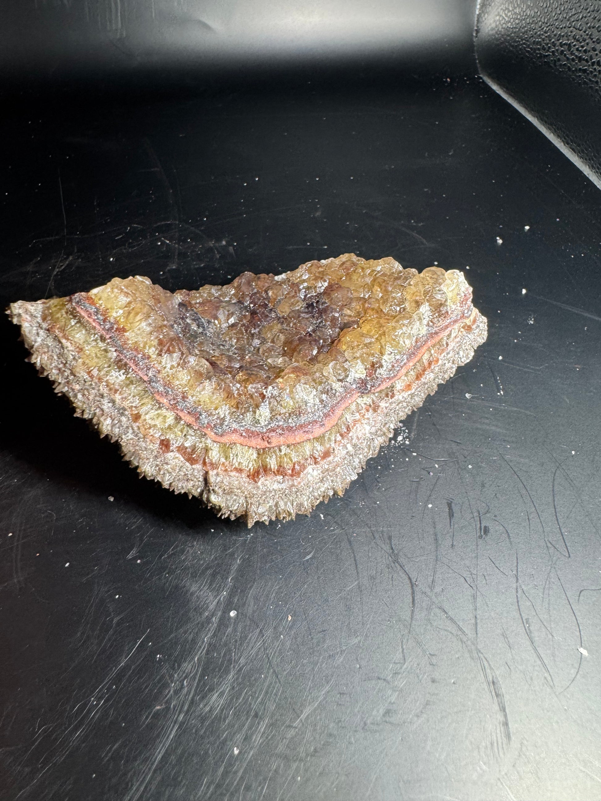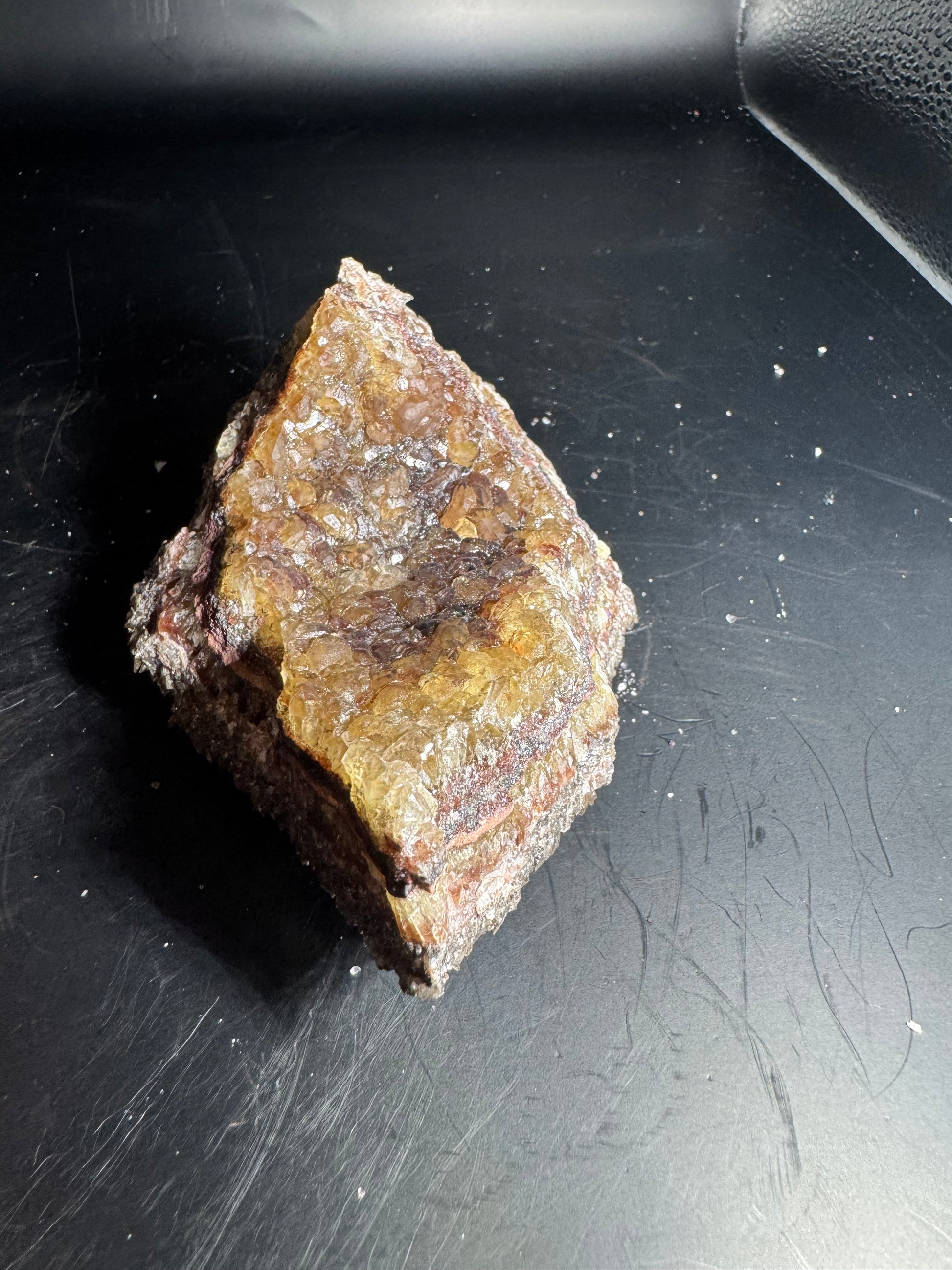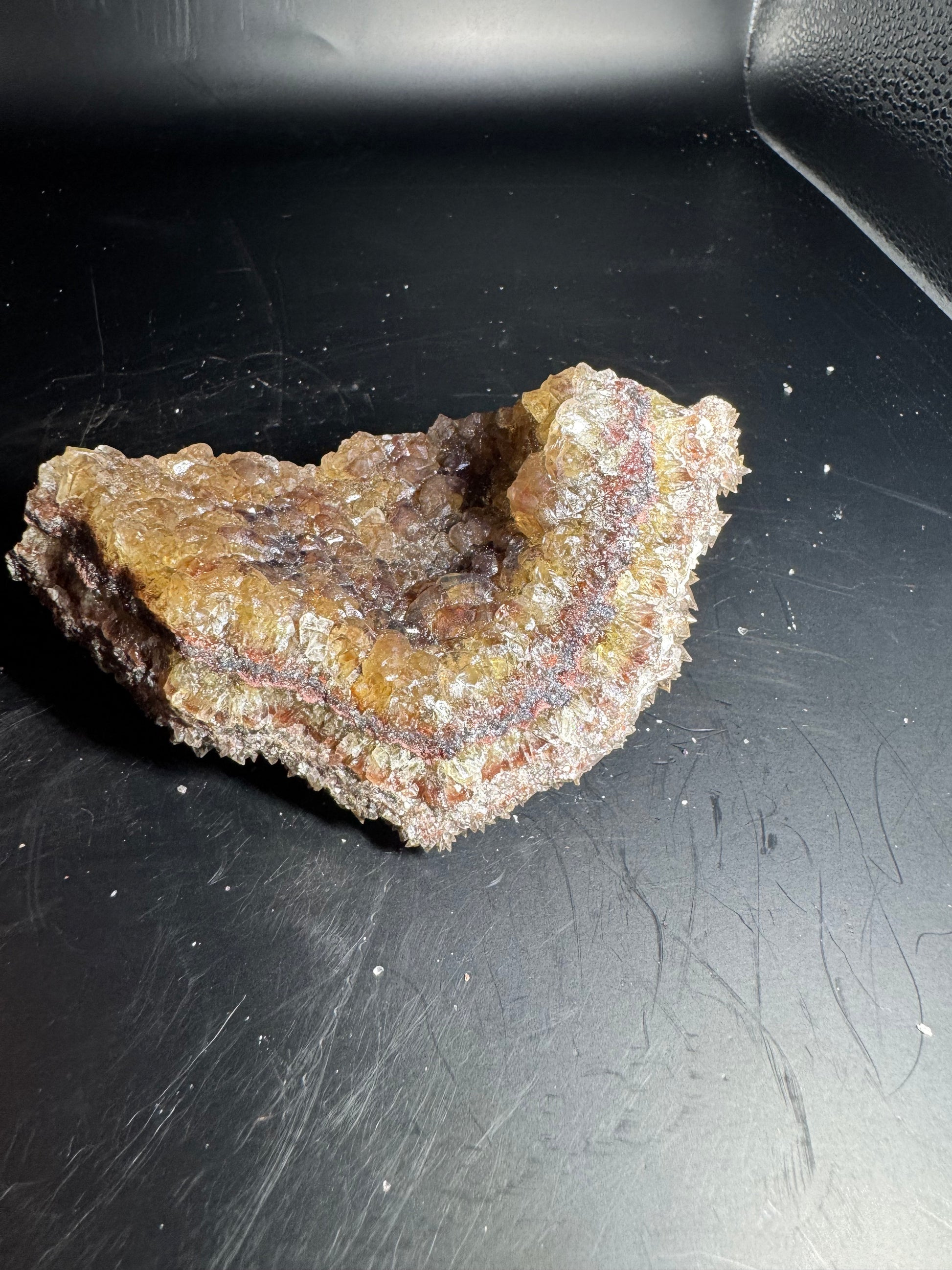Discover the captivating beauty of this large botryoidal red fluorite from the San Antonio Mine in Santa Eulalia, Mexico. Weighing 344 grams, its rich red hues and smooth globular formations create a stunning display piece perfect for collectors and crystal enthusiasts. This unique specimen not only adds vibrant natural color to any space but also offers a tactile experience that draws the eye and invites admiration. Embrace a rare treasure that combines raw mineral elegance with powerful visual impact. Has glittery calcite on opposite side.