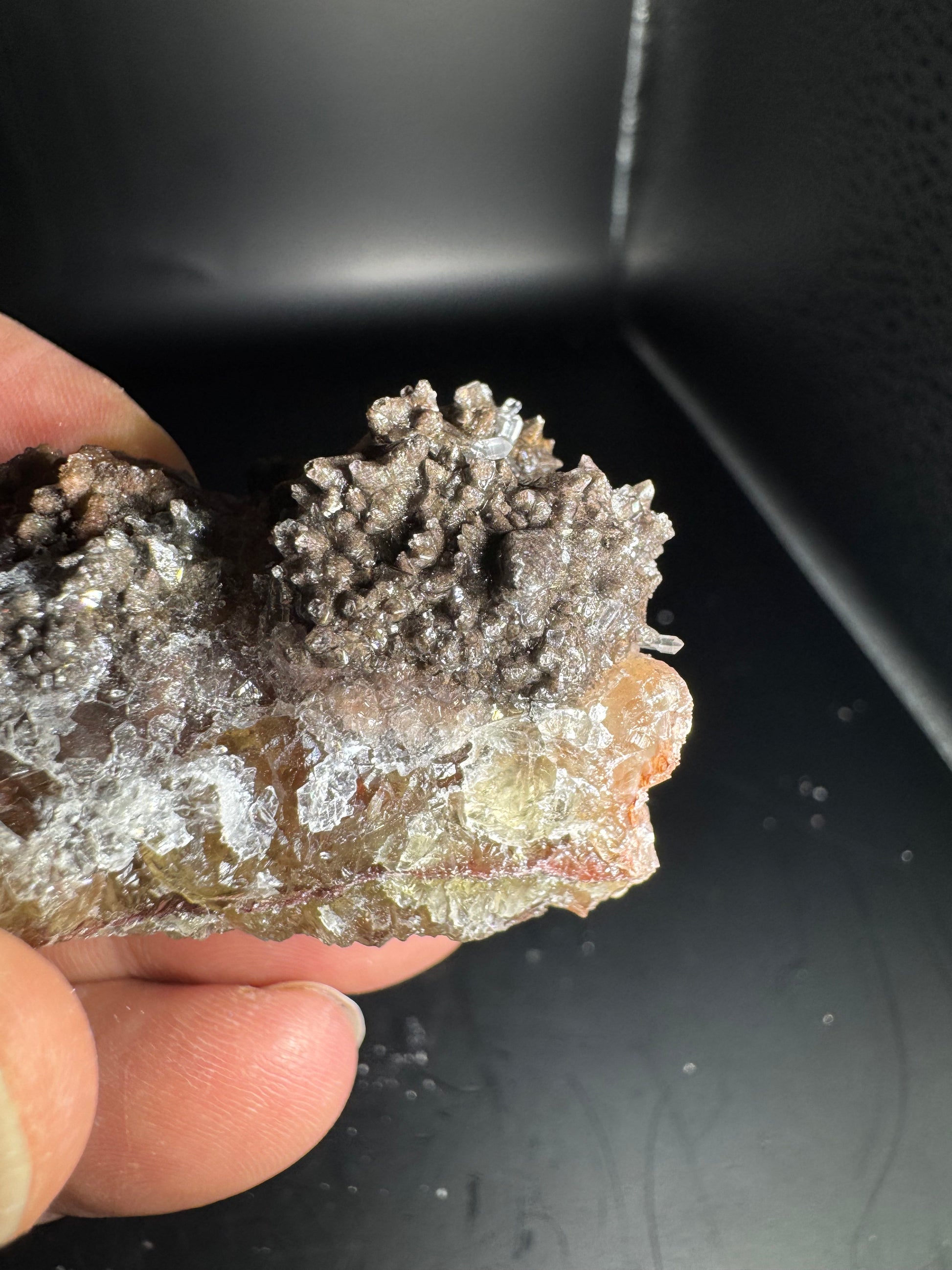 Discover the captivating beauty of this large botryoidal red fluorite from the San Antonio Mine in Santa Eulalia, Mexico. Weighing 73 grams, its rich red hues and smooth globular formations create a stunning display piece perfect for collectors and crystal enthusiasts. This unique specimen not only adds vibrant natural color to any space but also offers a tactile experience that draws the eye and invites admiration. Embrace a rare treasure that combines raw mineral elegance with powerful visual impact. Has glittery calcite on opposite side.