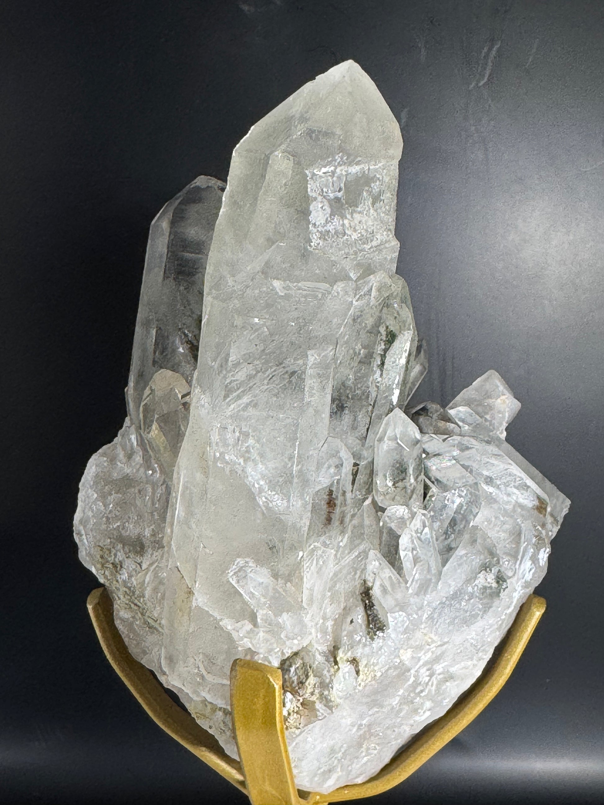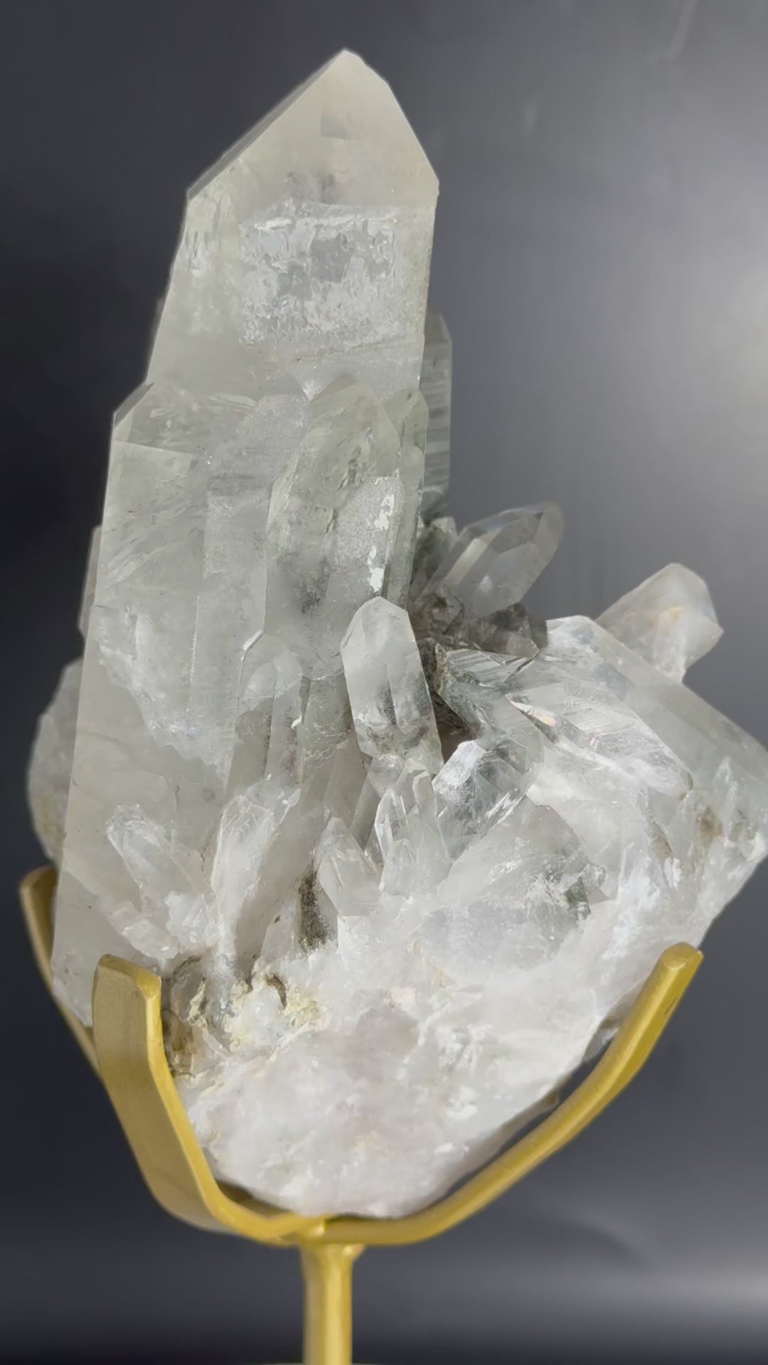 Elevate your space with the Brazilian Garden Quartz Cluster, beautifully showcased on a custom stand. This unique crystal formation captures nature’s artistry, offering both visual tranquility and a grounding energy. Perfect for enhancing your home or office decor, it serves as a captivating focal point that inspires calm and balance throughout any room. Bring a touch of natural elegance and positive ambiance to your surroundings with this exquisite cluster.