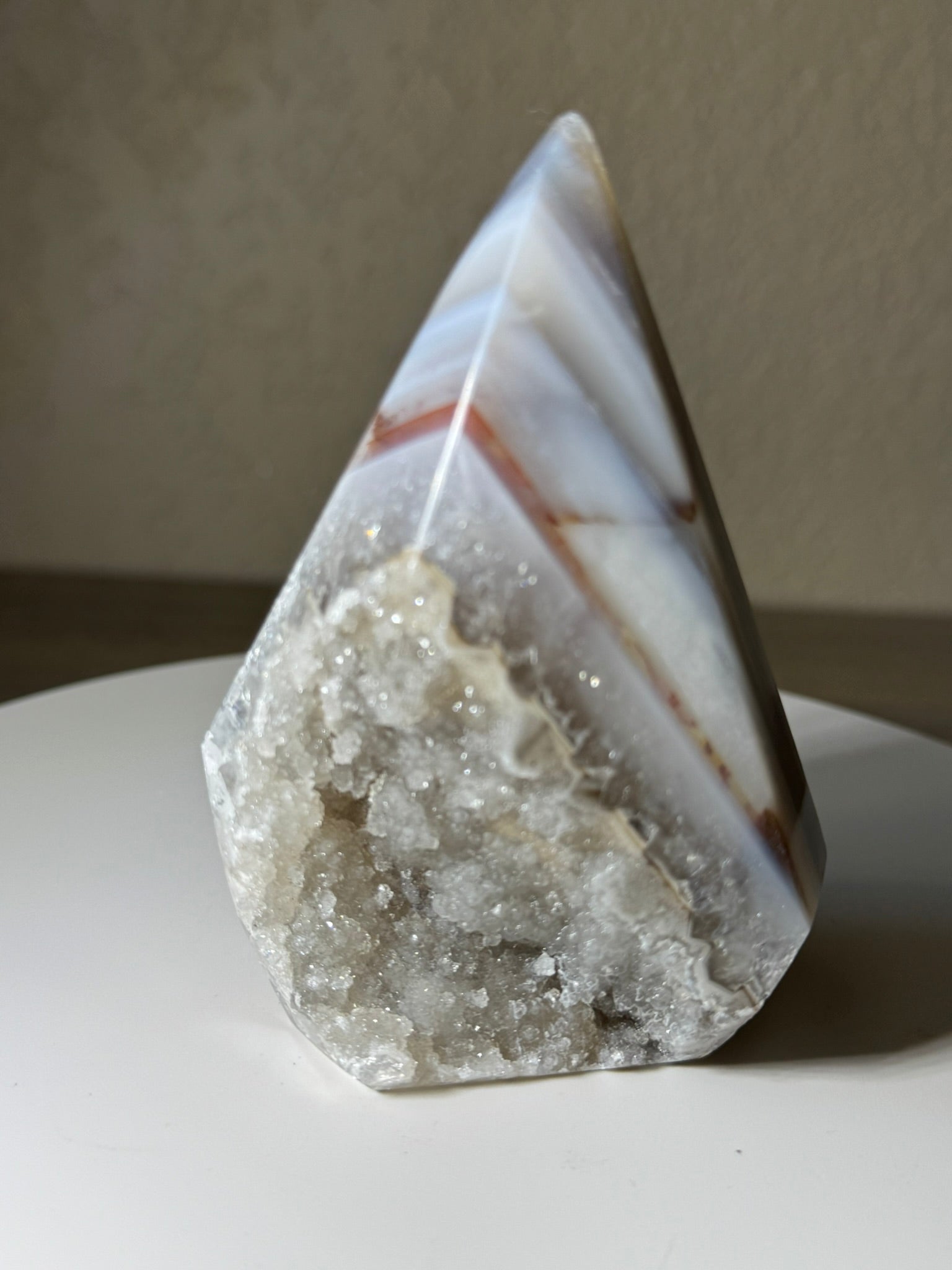 Discover the captivating beauty of the Brazilian Druzy Agate in a unique diamond shape. Its natural sparkle and vibrant blue hues make it a stunning statement piece, perfect for adding elegance and a touch of nature’s artistry to your collection. Embrace the allure of this one-of-a-kind gemstone and elevate your style effortlessly.