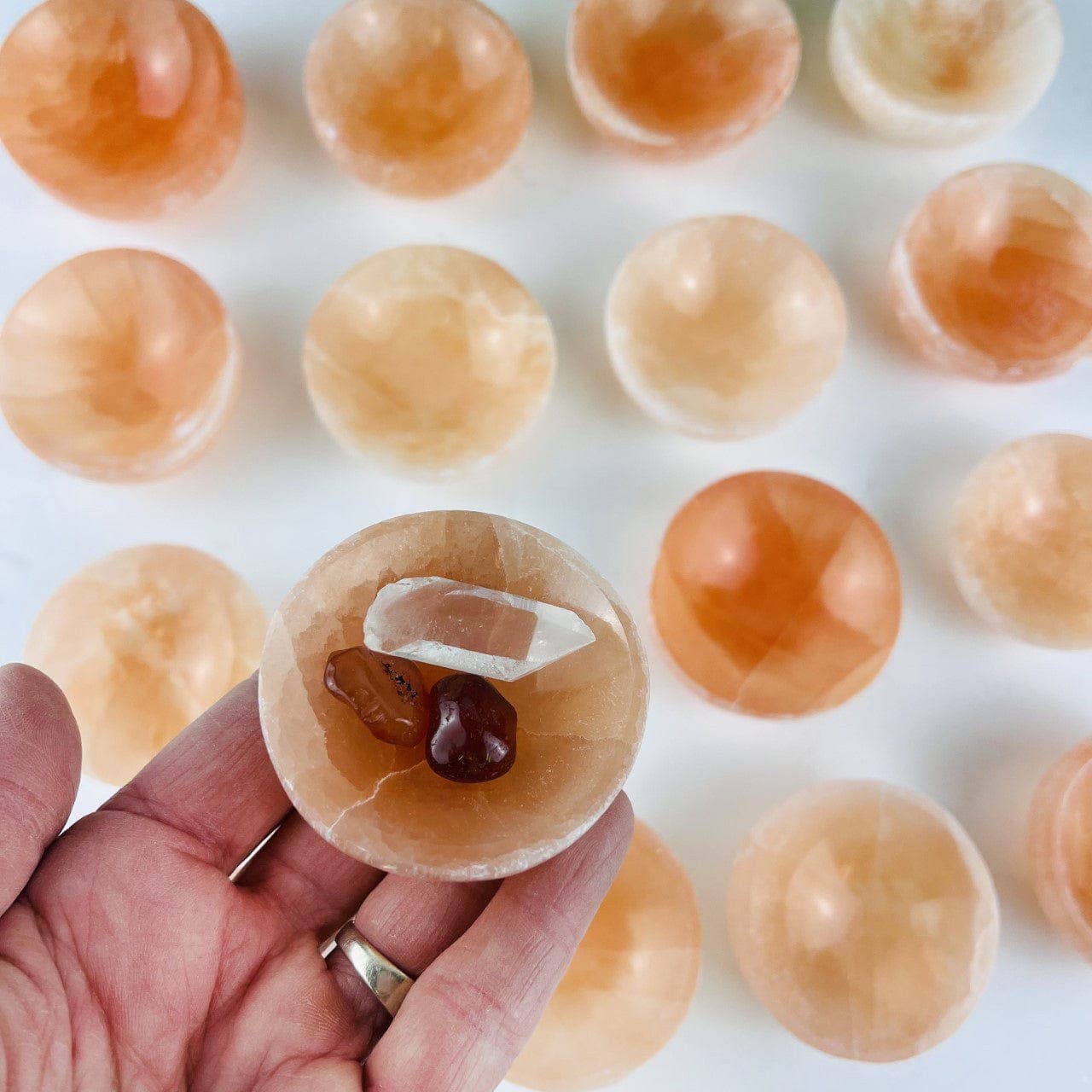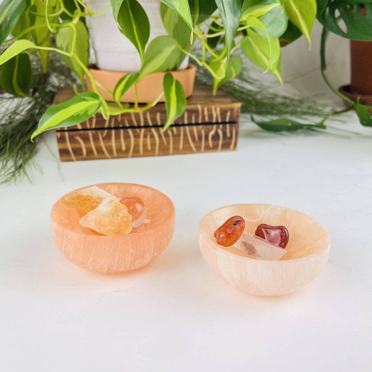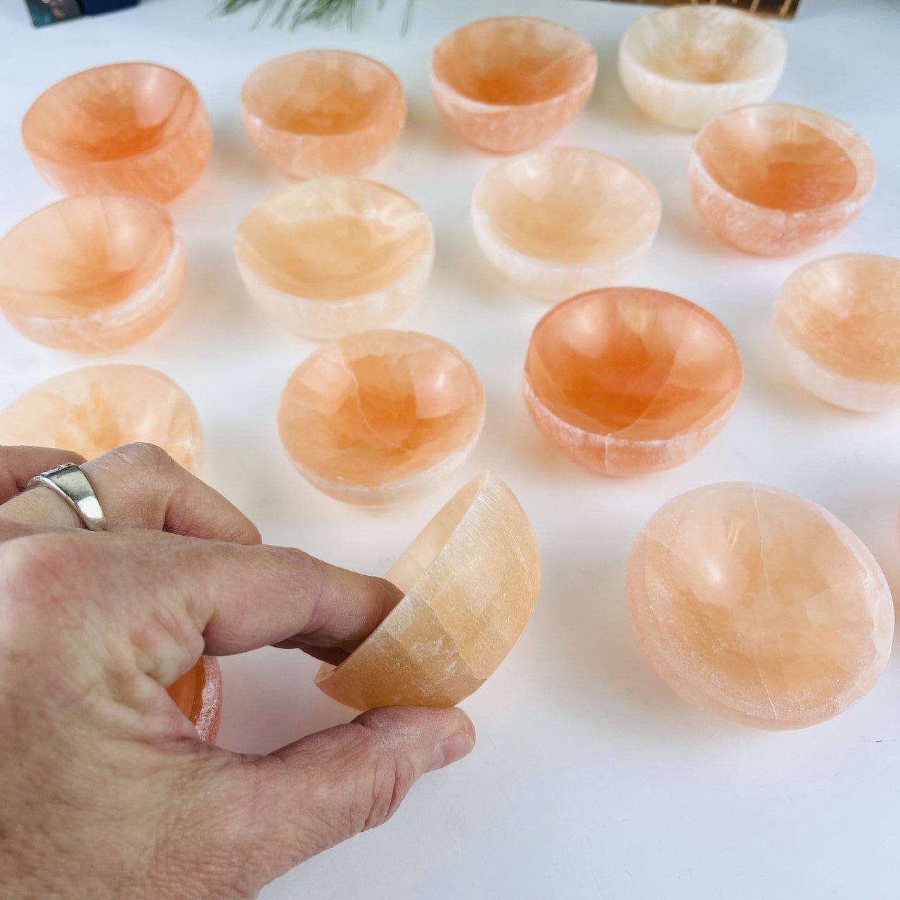 Crystal This listing is for ONE (1) Orange Selenite Bowl. These Orange Selenite bowls are a must have! They can be added to any tabletop and used for holding jewelry, rings, or pocket stones. Add one of these to your collection or use as home decor. Approx. Measure: 2.5 x 1.5 inches. Selenite is the stone of “MENTAL CLARITY”. It enhances mental flexibility and enables strong decision-making. Selenite removes energy blocks and clears the way for better intuition, psychic awareness, and spiritual development. < Crown Chakra > < Third Eye Chakra >