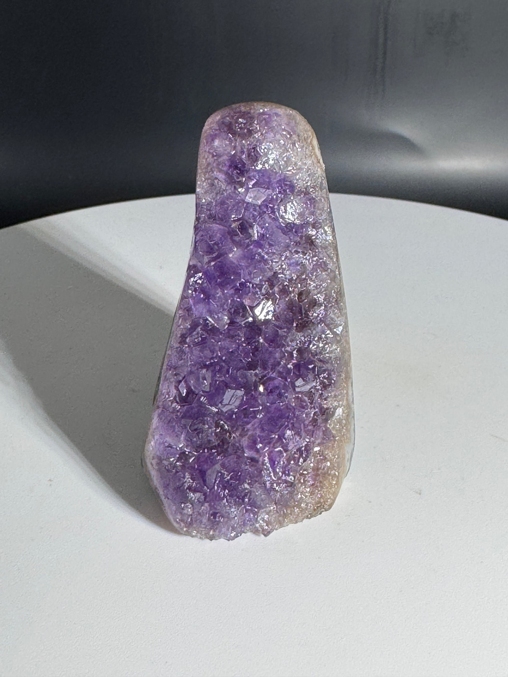 Discover the captivating beauty of our Dark Brazilian Purple Amethyst Cut Base. This rich, deep purple amethyst showcases exceptional clarity and a refined cut, perfect for adding a touch of elegance to any setting. Sourced from Brazil, renowned for its quality gemstones, this piece brings natural sophistication and vibrant energy to your collection. Elevate your style or craft with this stunning amethyst base that embodies both luxury and timeless charm.