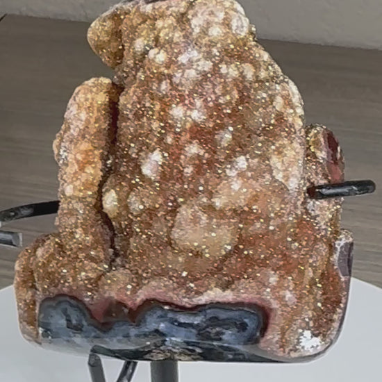 Discover the captivating beauty of the Brazilian Geode with a custom stand, perfect for adding a unique and natural touch to your space. Each geode showcases stunning crystal formations that catch the light, creating a mesmerizing display. The custom stand enhances its elegance while providing a stable and stylish base, making it an ideal centerpiece for your home or office. Elevate your décor with this exquisite natural treasure that combines art and nature effortlessly.