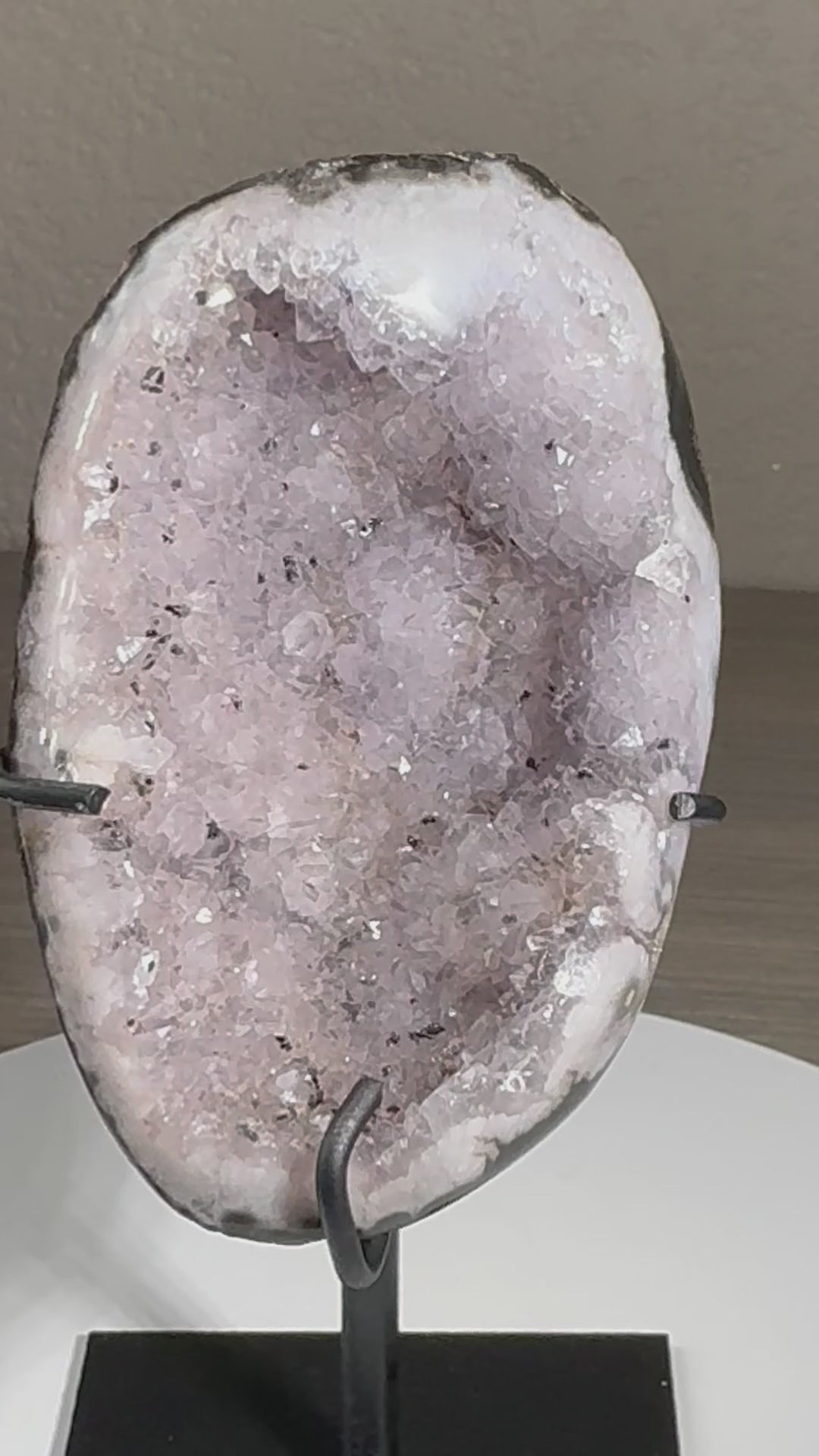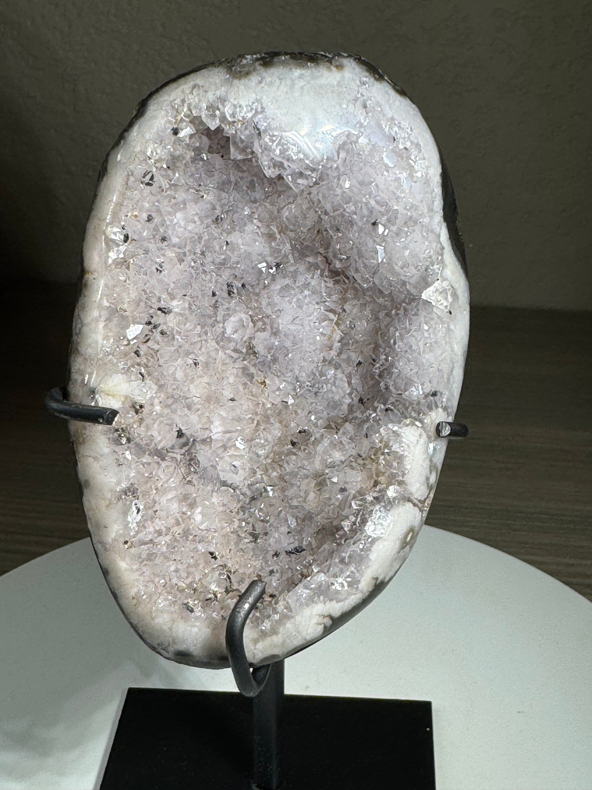 Discover the captivating beauty of the Brazilian Geode with a custom stand, perfect for adding a unique and natural touch to your space. Each geode showcases stunning crystal formations that catch the light, creating a mesmerizing display. The custom stand enhances its elegance while providing a stable and stylish base, making it an ideal centerpiece for your home or office. Elevate your décor with this exquisite natural treasure that combines art and nature effortlessly.