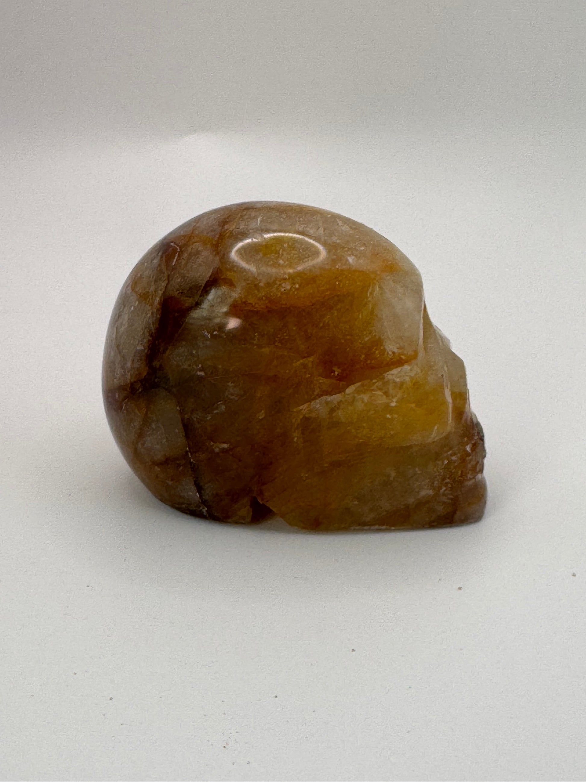 Individually hand carved from stunning Fire Quartz, this skull is a luxurious and exclusive addition to any collection. With its intricate details and fiery hues, it adds an elegant touch to any space. Crafted with precision and passion, this skull is a true work of art.
