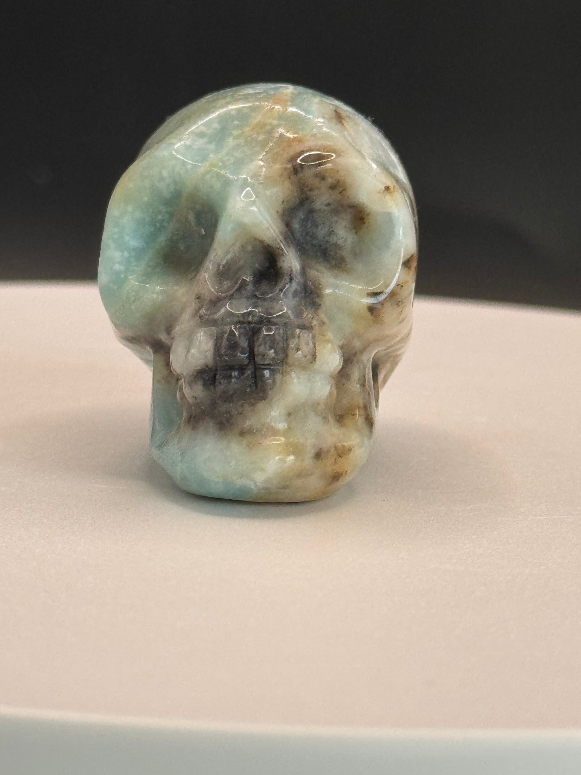 Discover the serene beauty of the Blue Calcite Skull, a captivating piece that combines natural elegance with symbolic meaning. Crafted from smooth blue calcite, this skull offers a calming presence, perfect for enhancing your space or meditation practice. Its soothing blue hues promote tranquility and clear communication, making it a meaningful addition to your collection or a thoughtful gift. Embrace the peaceful energy and unique charm of this exquisite crystal skull today.