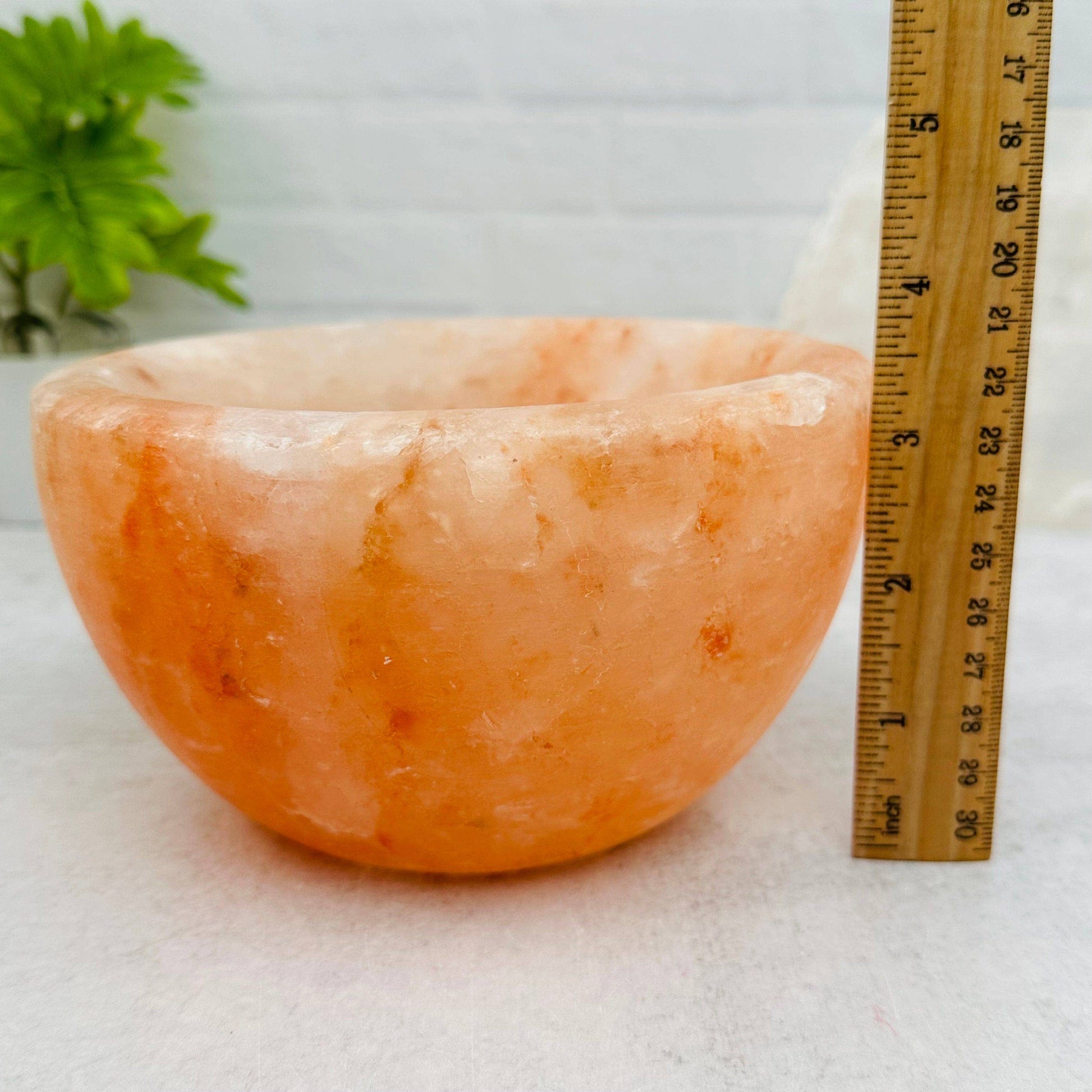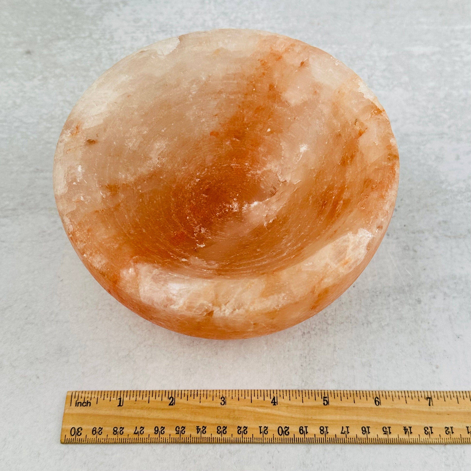 Crystal This listing is for ONE (1) Himalayan Salt Bowl STOCK PHOTO. These bowls will vary in size and characteristics. Gorgeous shade of Orange and Peach! These would look perfect anywhere in your home, office or sacred space. They also make a great gift for someone special. These Himalayan Salt bowls are hand carved. They are thought to be an Energy Booster and help in purifying the air around you. With it's warm hue of color this stone helps uplift your mood, reduce stress and aides in relaxation. Measure approx.: 6.125" wide 3.25 deep Make one of these Himalayan Salt bowls yours while you can!