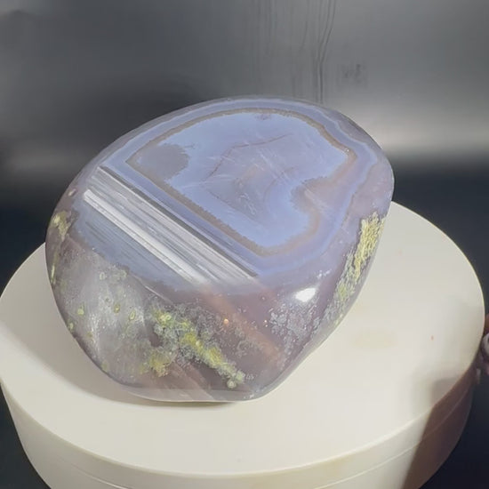 Discover the captivating beauty of this Large Enhydro Banded Agate from Brazil. Featuring intricate banding patterns and a rare water inclusion, this unique stone offers a natural wonder perfect for collectors and crystal enthusiasts. Its size and striking appearance make it an exceptional piece to showcase, adding natural elegance and positive energy to your space. Embrace the authentic charm of Brazilian craftsmanship with this standout agate.