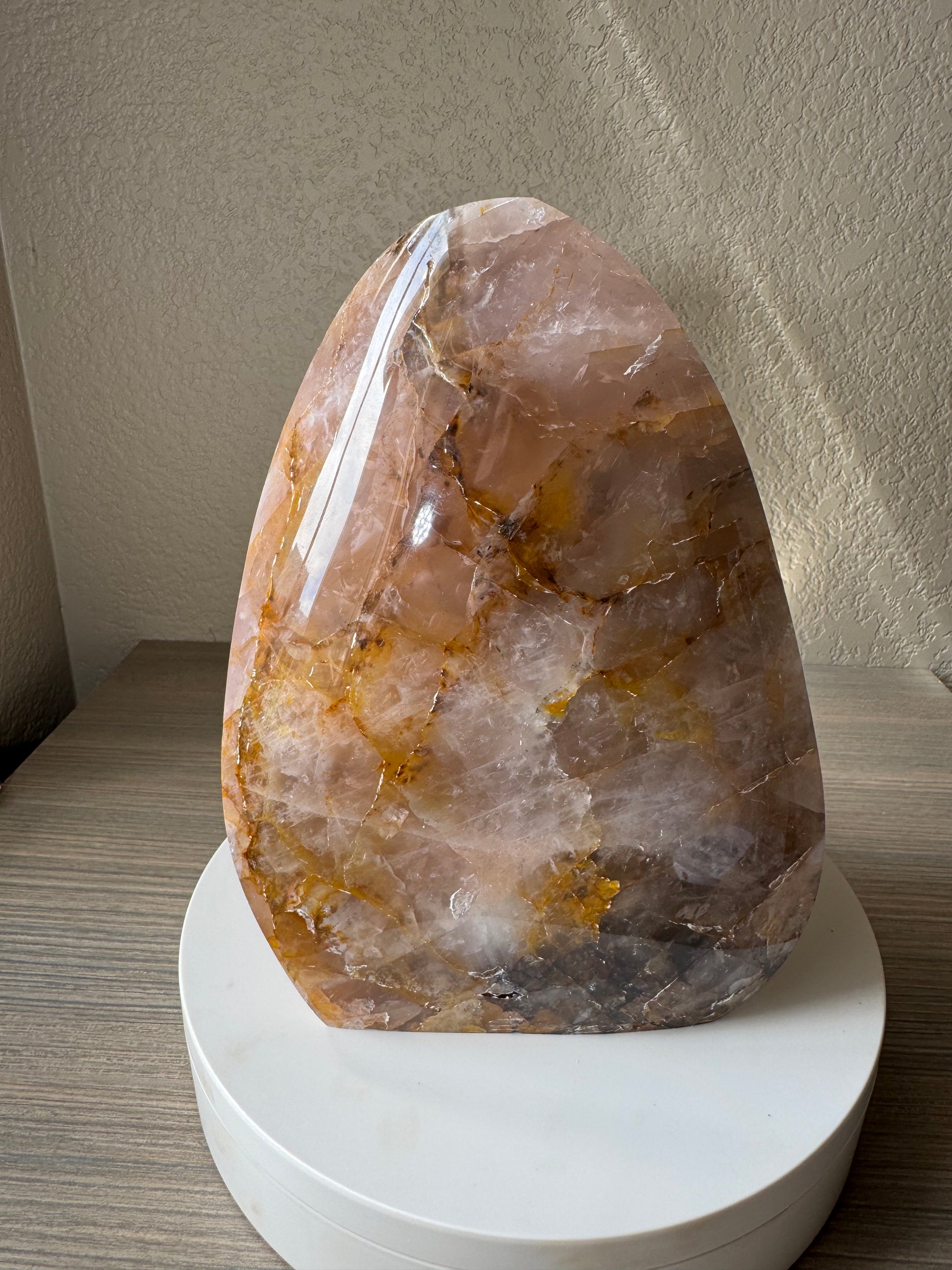 Large Golden Healer with Rose Quartz Freeform 7 lbs from Brazil