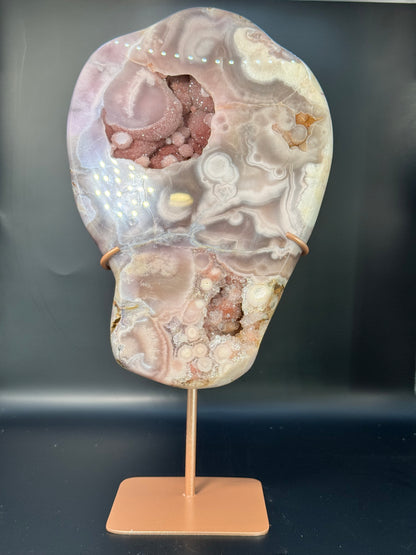 Large Pink Amethyst with Sugar Druzy Freeform From Brazil with Stand