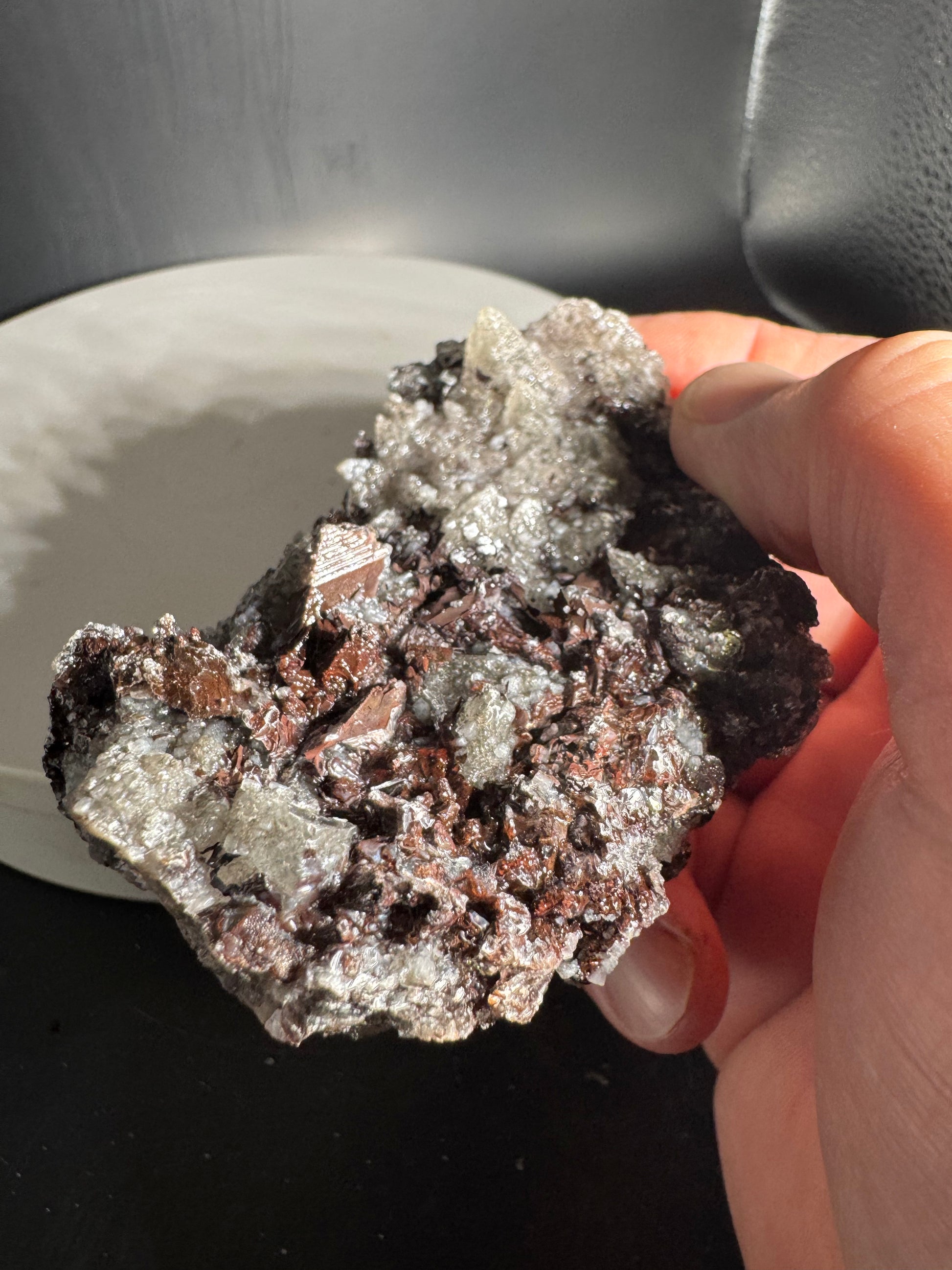 Discover the captivating energy of this 193 Gram Sparkly Dog Tooth Calcite with Hematite from the renowned Potosi Mine in Chihuahua, Mexico. The natural sparkle and striking contrast of calcite and hematite make it a unique specimen that enhances any collection or space. Its vibrant mineral presence not only appeals visually but is believed to support grounding and clarity, bringing a balanced energy to your environment. A stunning and meaningful addition for collectors and enthusiasts alike.