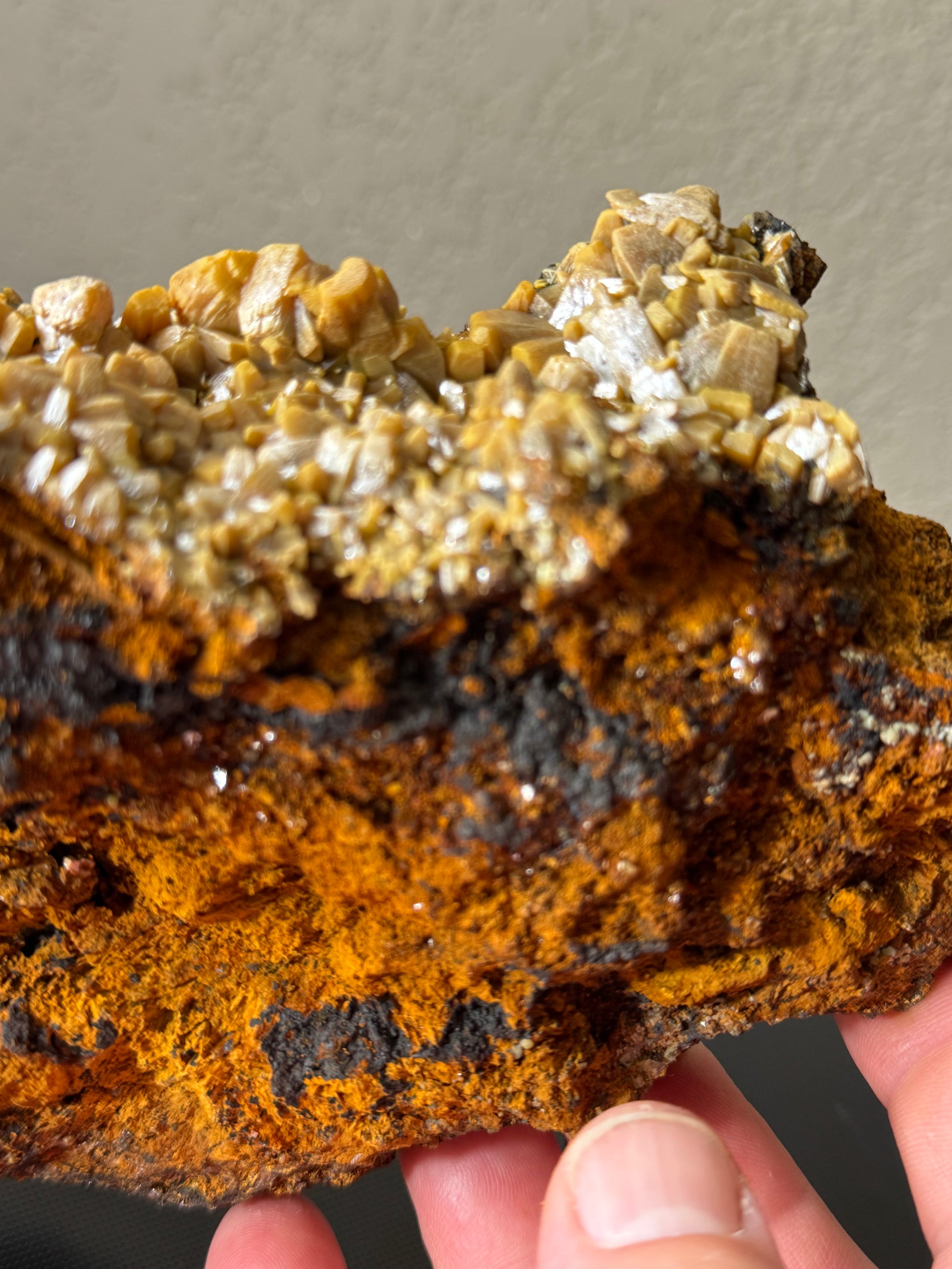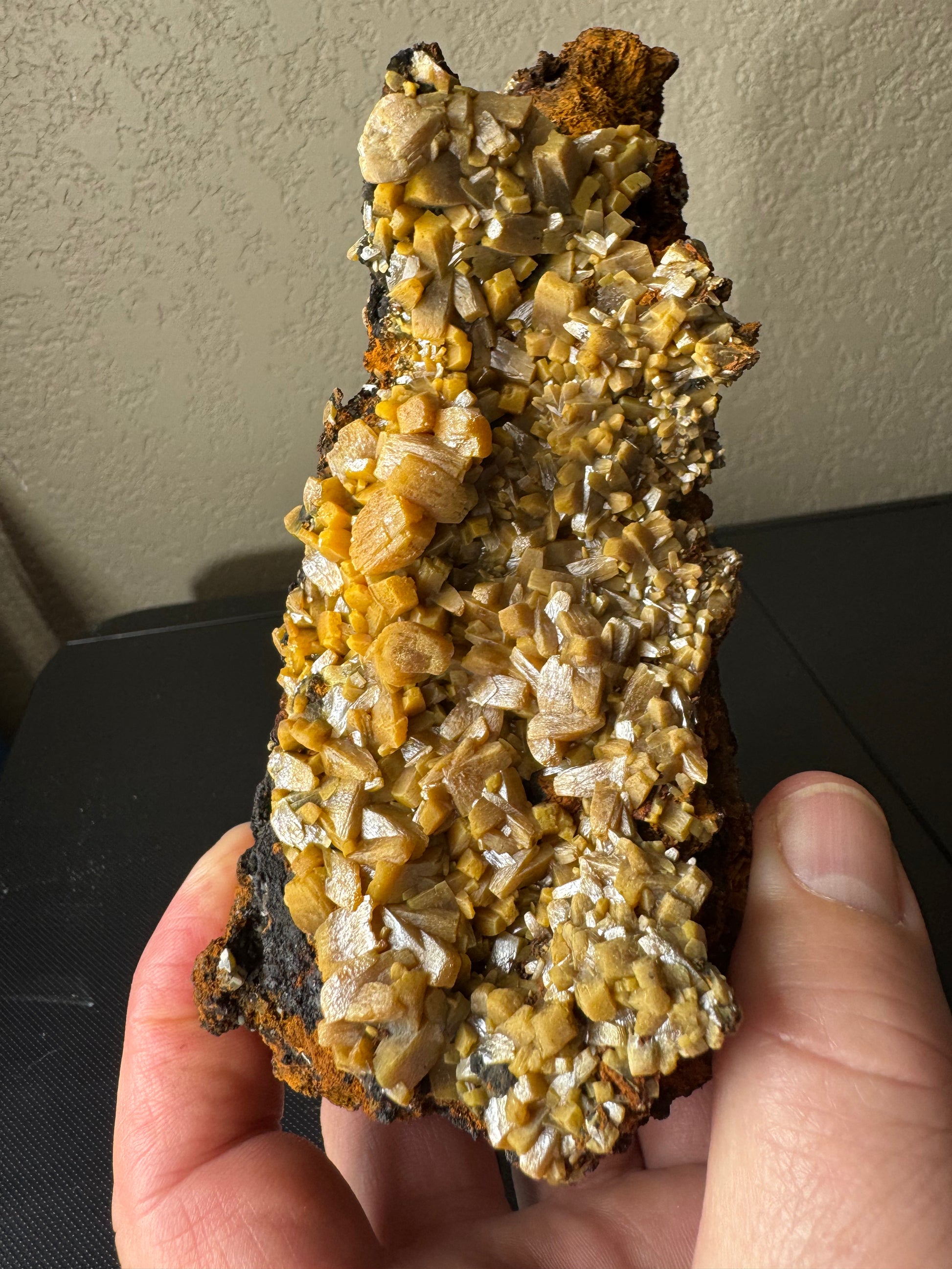 Discover the striking beauty of this large Wulfanite specimen from the renowned La Ojuela Mine in Mapimi, Durango, Mexico. Its vibrant crystals showcase natural brilliance and unique formation, making it a captivating addition for collectors and enthusiasts alike. Elevate your mineral collection with this rare and impressive piece that highlights the exceptional geology of its origin. The matrix is solid but fragile and small fragments of the matrix may come loose in shipping.