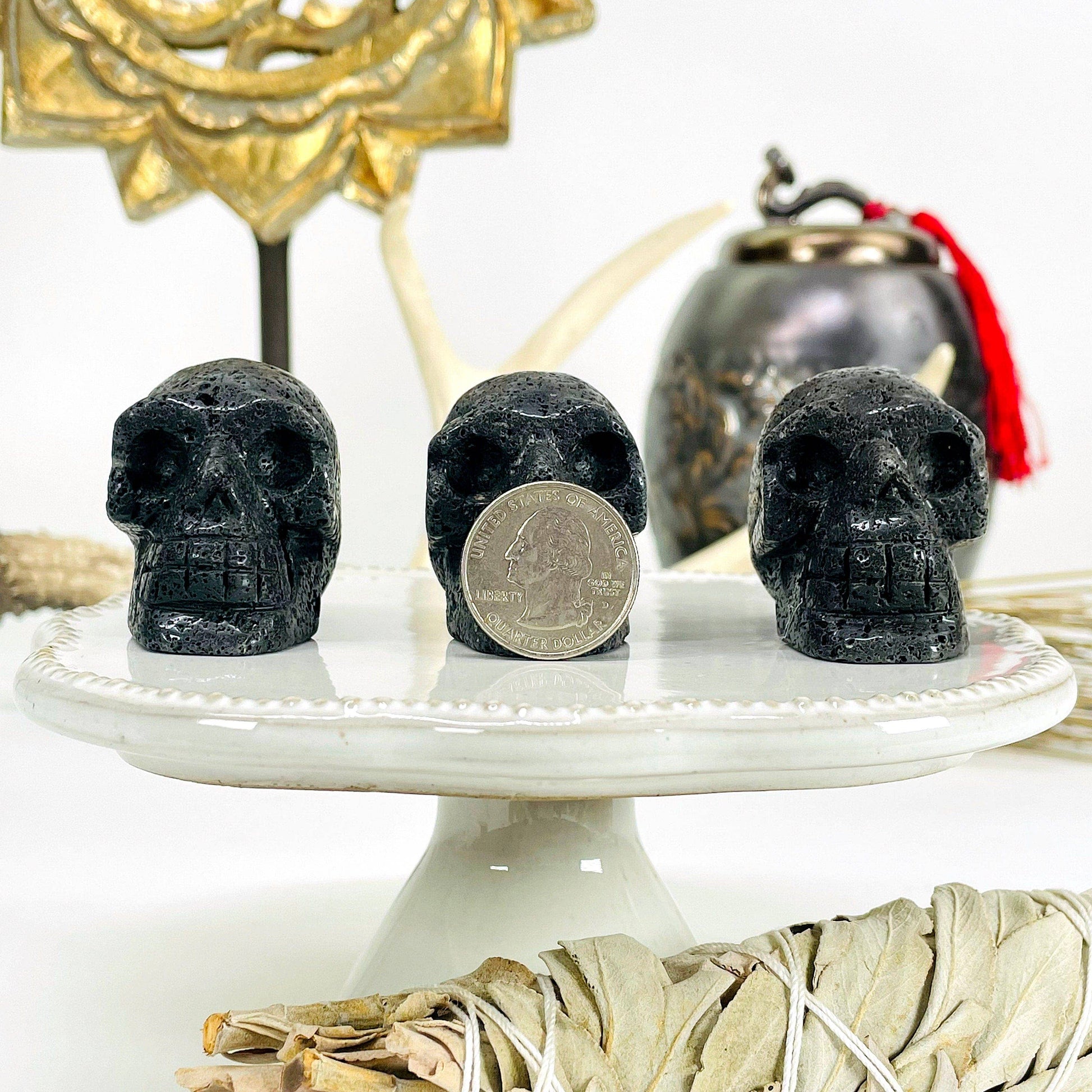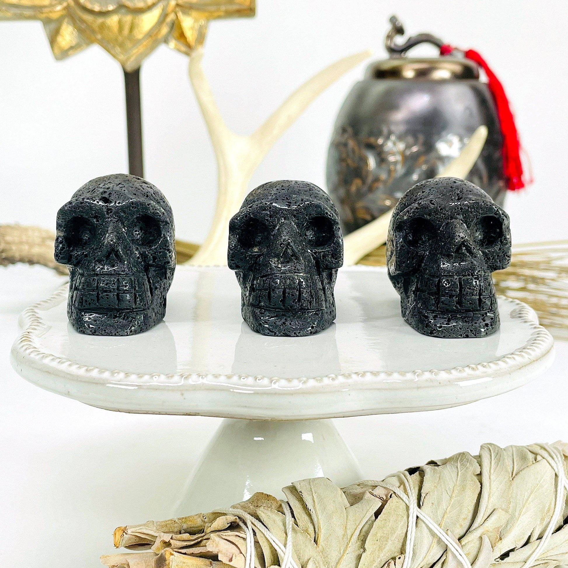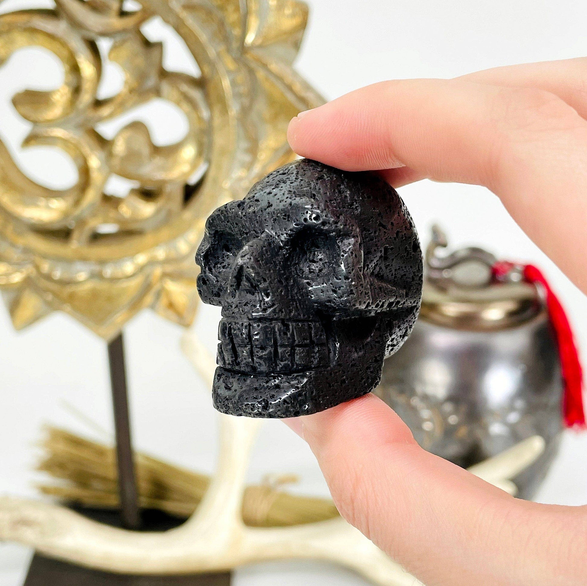 These Lava Skull Heads would make a great addition to your collection! The lava stone has an amazing texture that highlights the carved skull details. The bottom is flat so you can easily display this piece in your home, office, or sacred space. Make one yours today, or gift one to someone special you know!