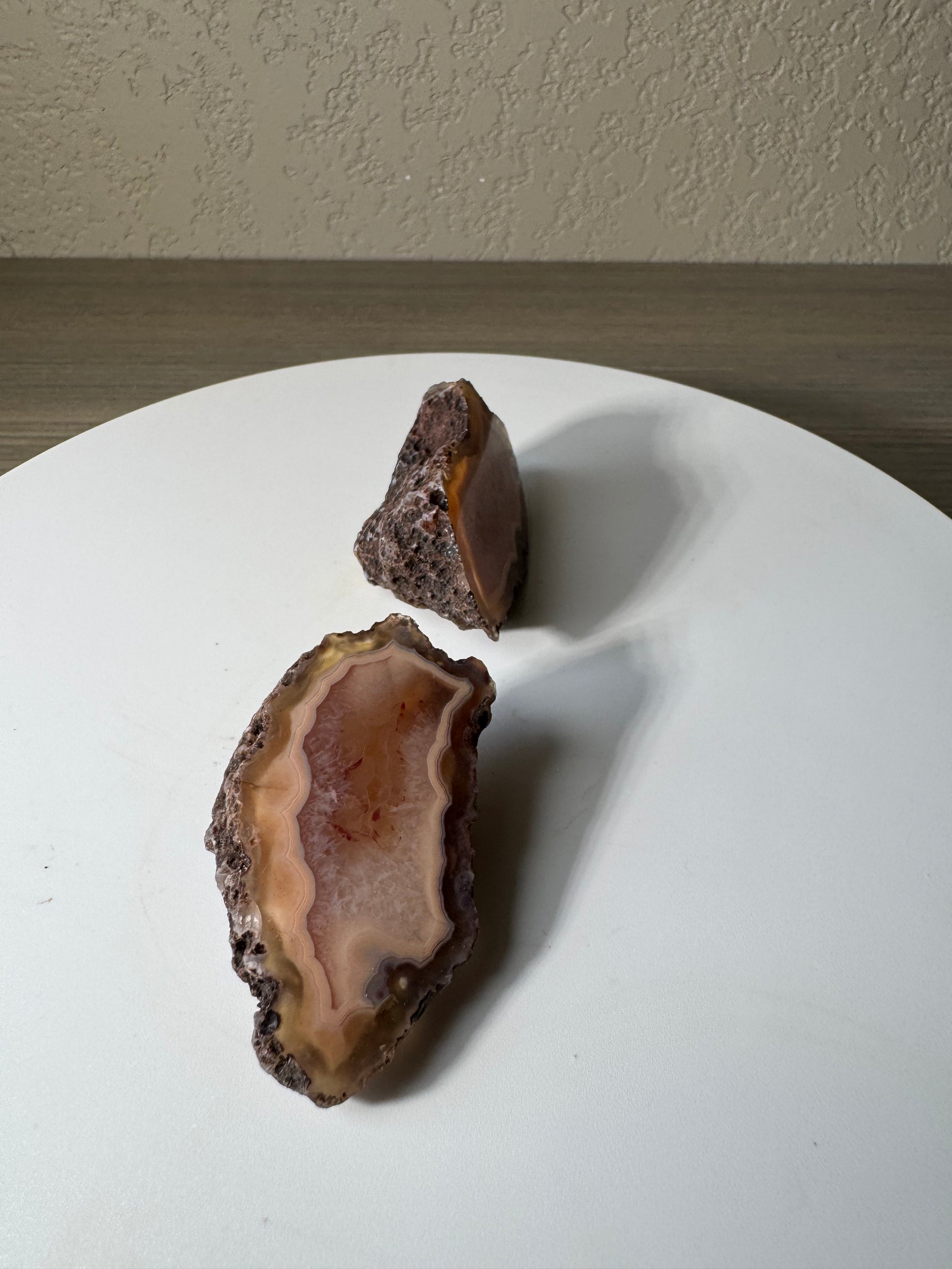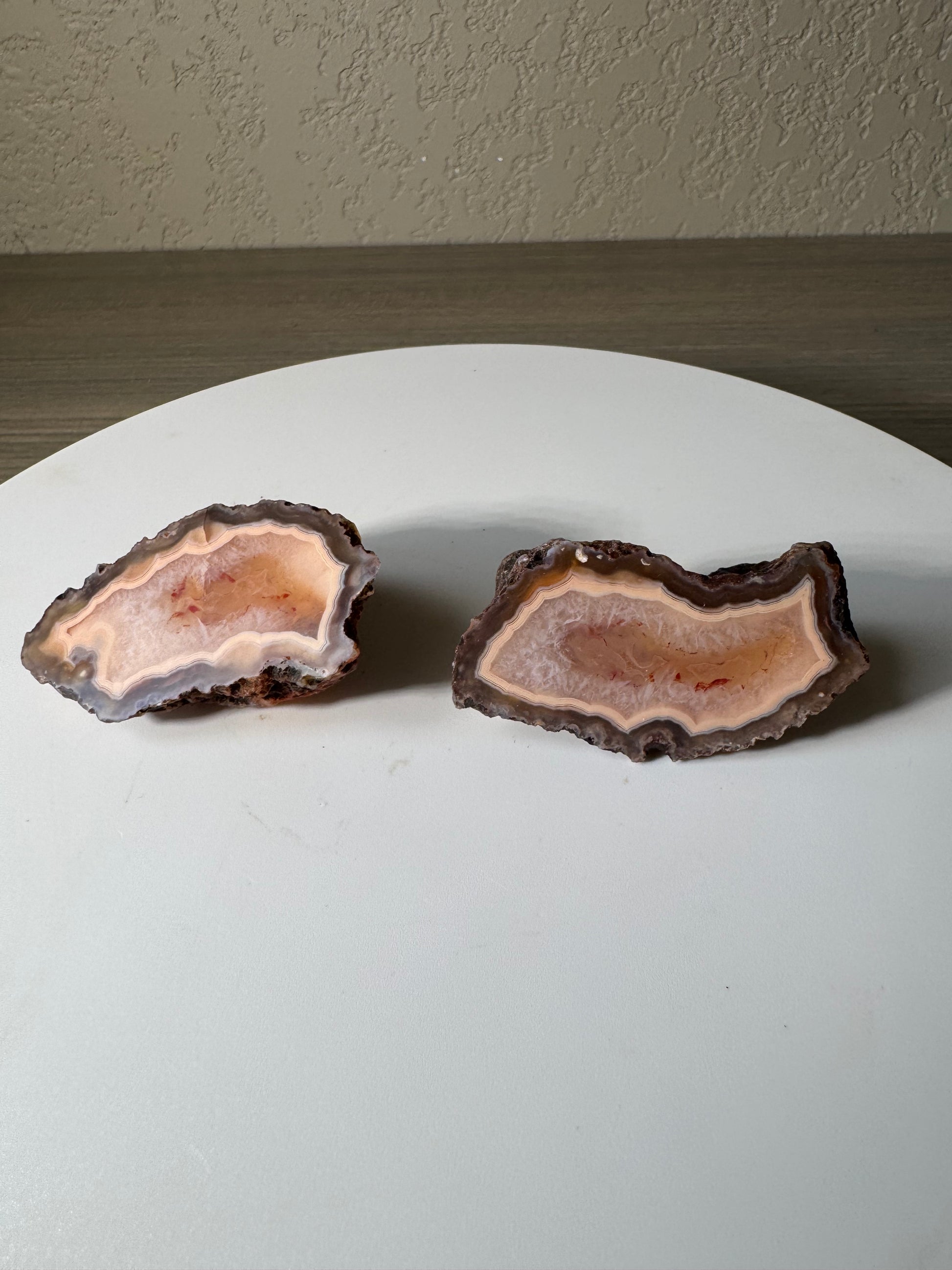Discover the captivating beauty of the Malawi Agate Pair, featuring two stunning stones known for their unique patterns and vibrant colors. Perfect for collectors or those seeking natural elegance, these agates bring a touch of nature’s artistry into your space. Their distinctive appearance makes each piece truly one-of-a-kind, adding character and charm wherever displayed. Embrace the natural allure and timeless appeal of this exquisite pair.