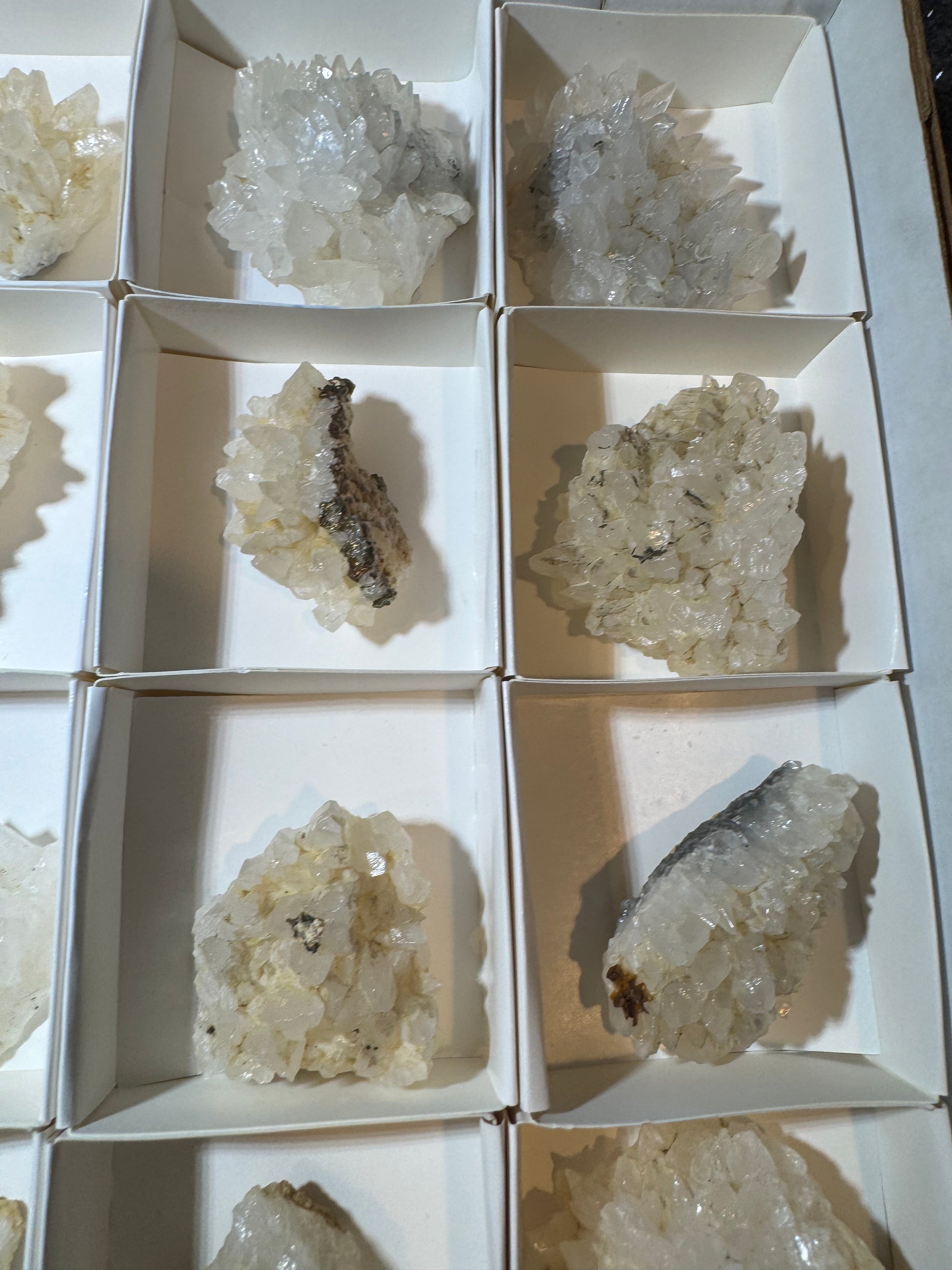 24 Pieces weighing 3.5 lbs with box. The box is a standard 16 x 11 mineral box. You will receive these exact minerals.