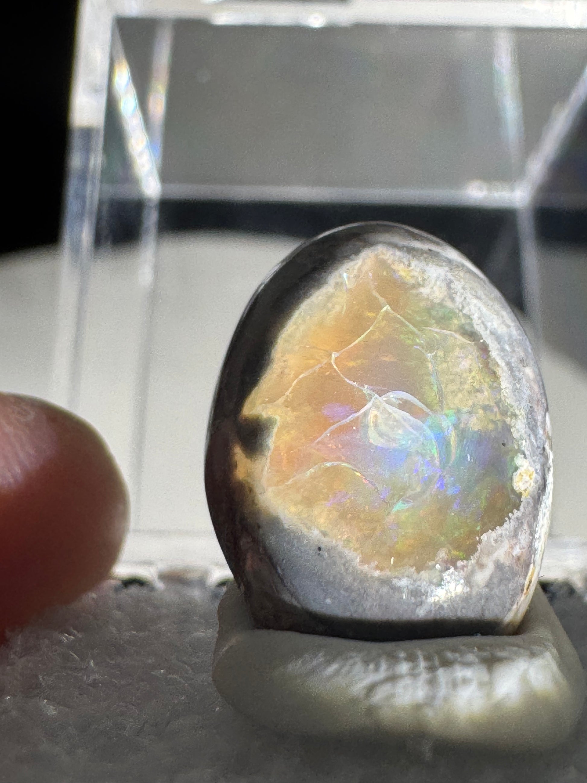 Illuminate your jewelry collection with the Mexican Cantera Fire Opal Cabochon. This stunning stone boasts vibrant fiery hues unique to Mexican cantera opals, capturing light and attention effortlessly. Perfect for creating eye-catching rings, pendants, or earrings, its smooth cabochon cut enhances the opal’s natural brilliance and color play. Add a touch of exotic elegance and warmth to your designs with this captivating gemstone.