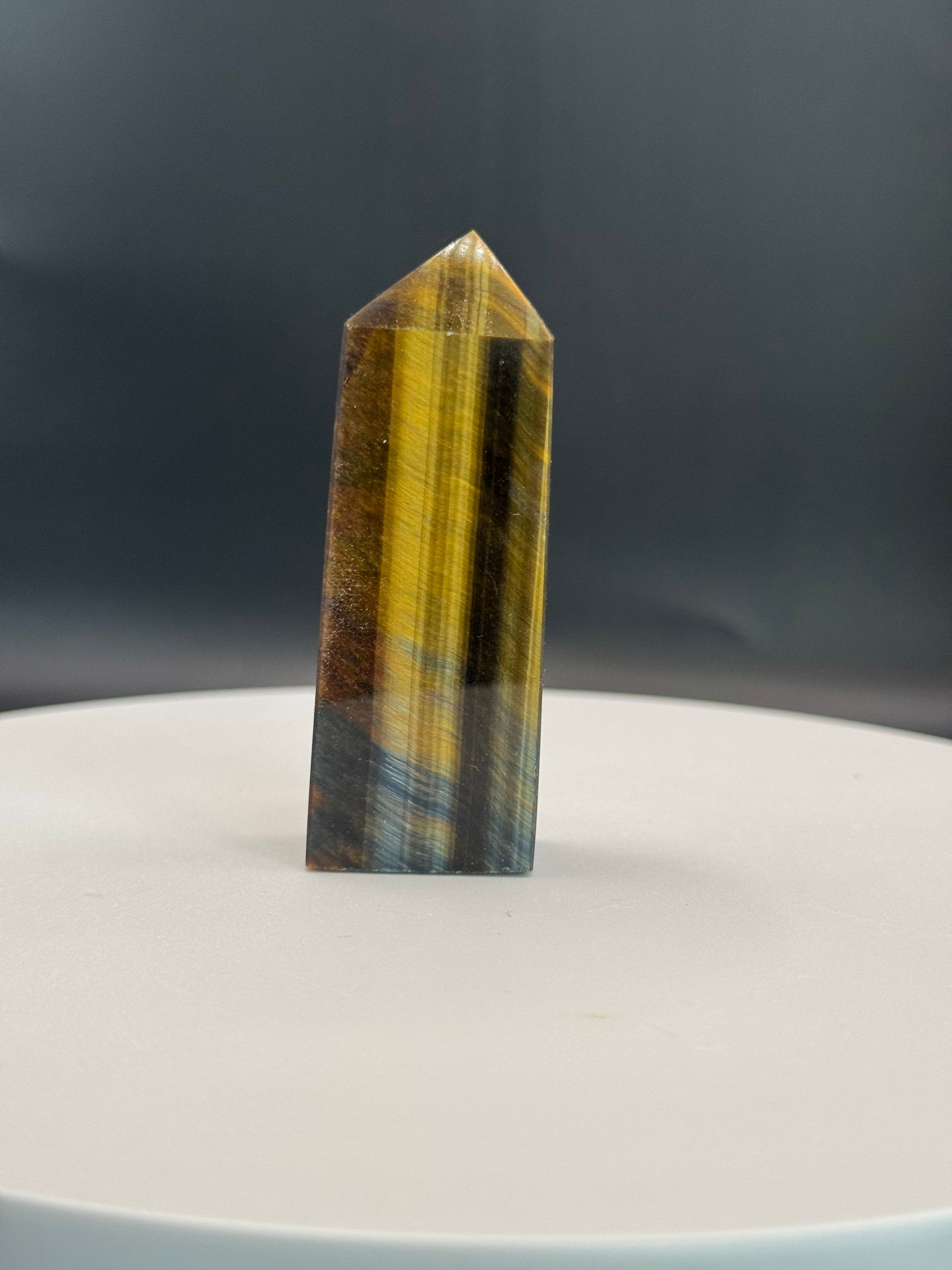 Discover the captivating Blue Tiger's Eyes Tower, a striking crystal that combines beauty and energy. Its rich blue hues and natural shimmer make it a stunning centerpiece for any space. Known for promoting clarity and calm, this tower can enhance your environment with a soothing yet powerful presence. Perfect for meditation, décor, or gifting, it brings both elegance and positive energy into your life. Elevate your space with the unique charm of the Blue Tiger's Eyes Tower today.