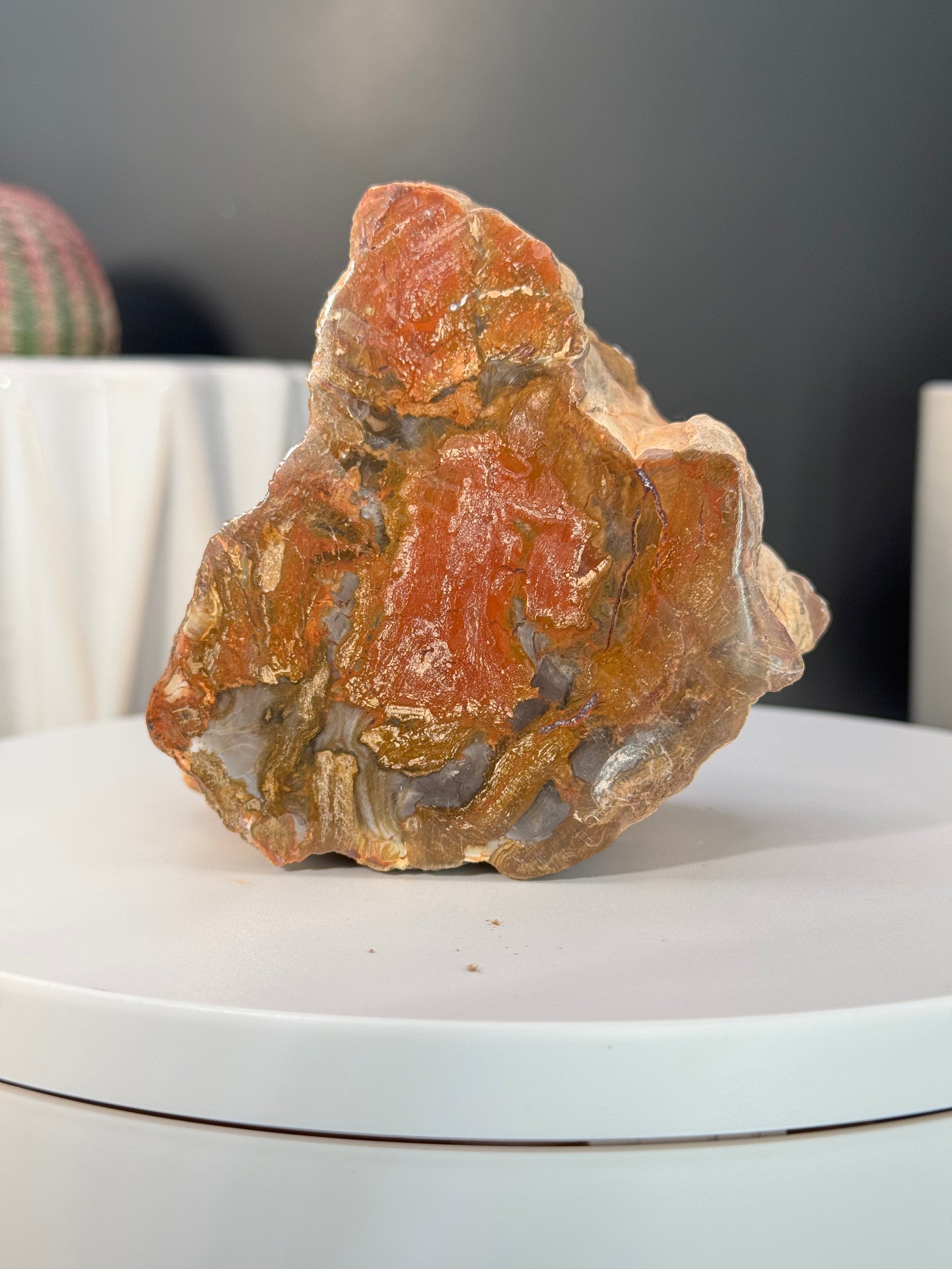 Madagascar Petrified Wood is an exotic and one-of-a-kind piece of nature. This stunning piece has been transformed into a beautiful, polished work of art. It's perfect for adding a touch of sophistication and luxury to any space. Bring the beauty of the outdoors inside with this unique and timeless treasure.