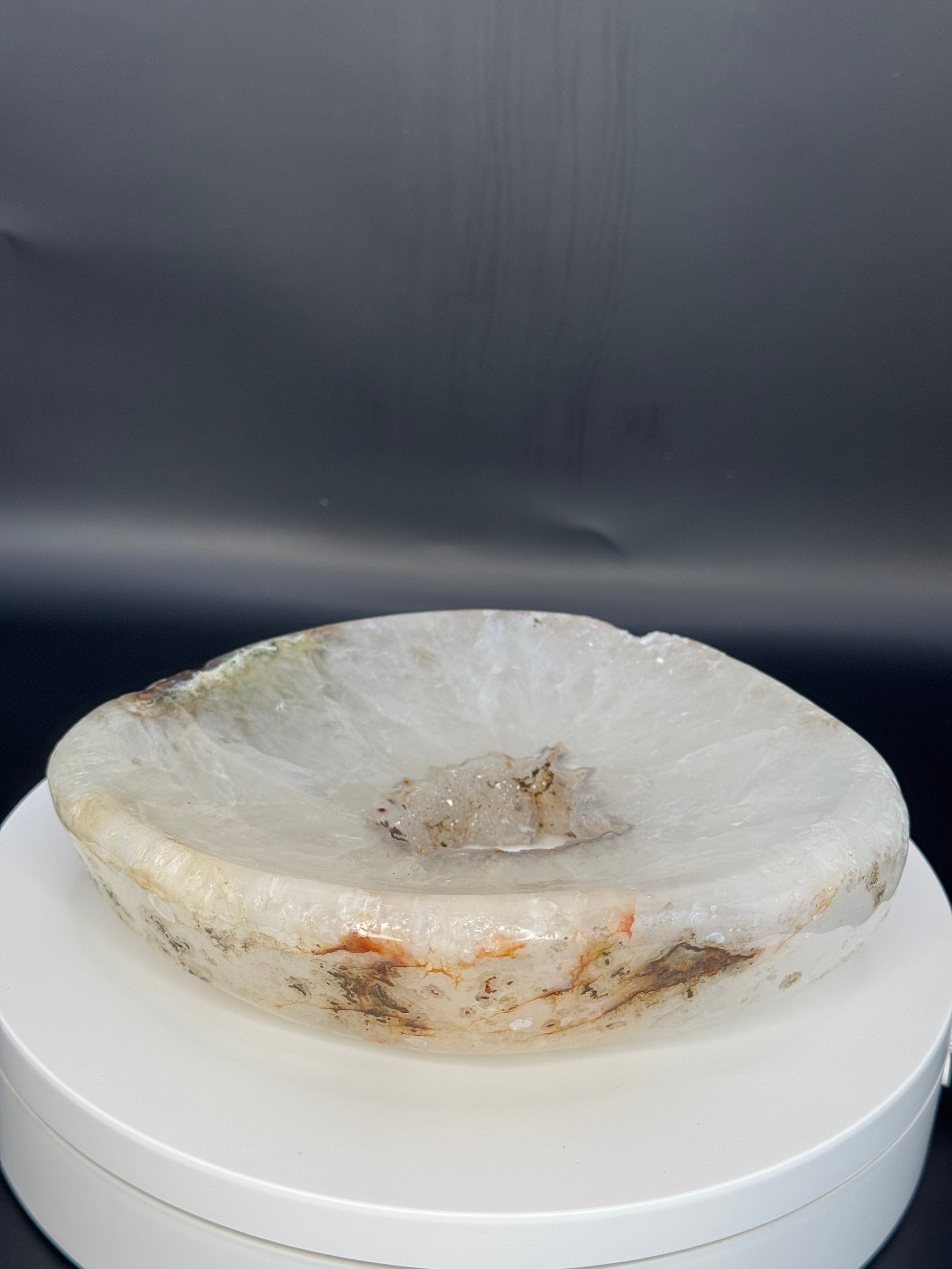 Elevate your spiritual practice with our authentic Brazilian Quartz Bowl. Meticulously carved from pure quartz crystal sourced directly from Brazil's mineral-rich regions, this bowl channels powerful energy vibrations to cleanse your space and amplify intentions. Perfect for meditation, sound healing, or as a stunning decorative piece that transforms any room with its natural brilliance.