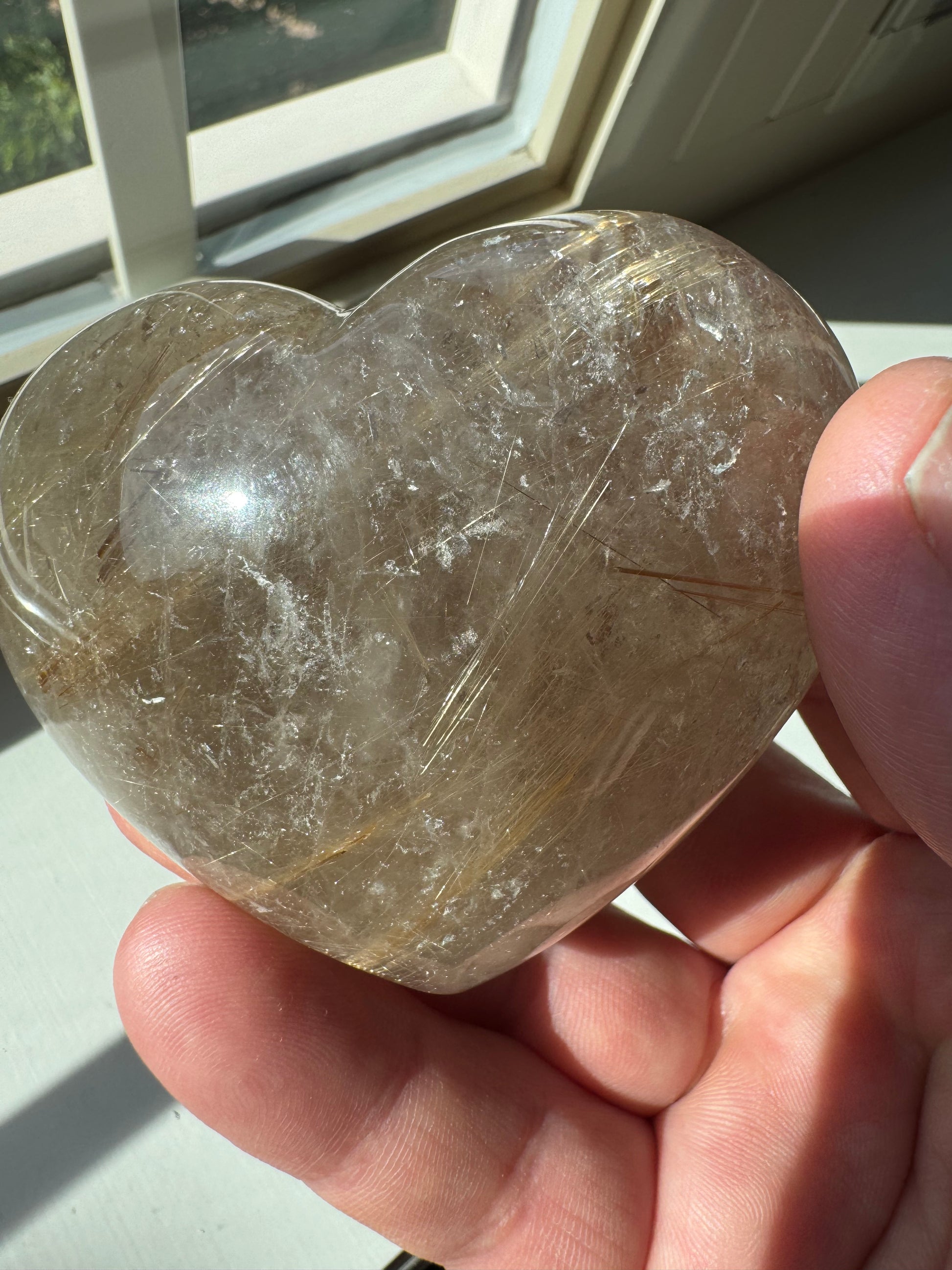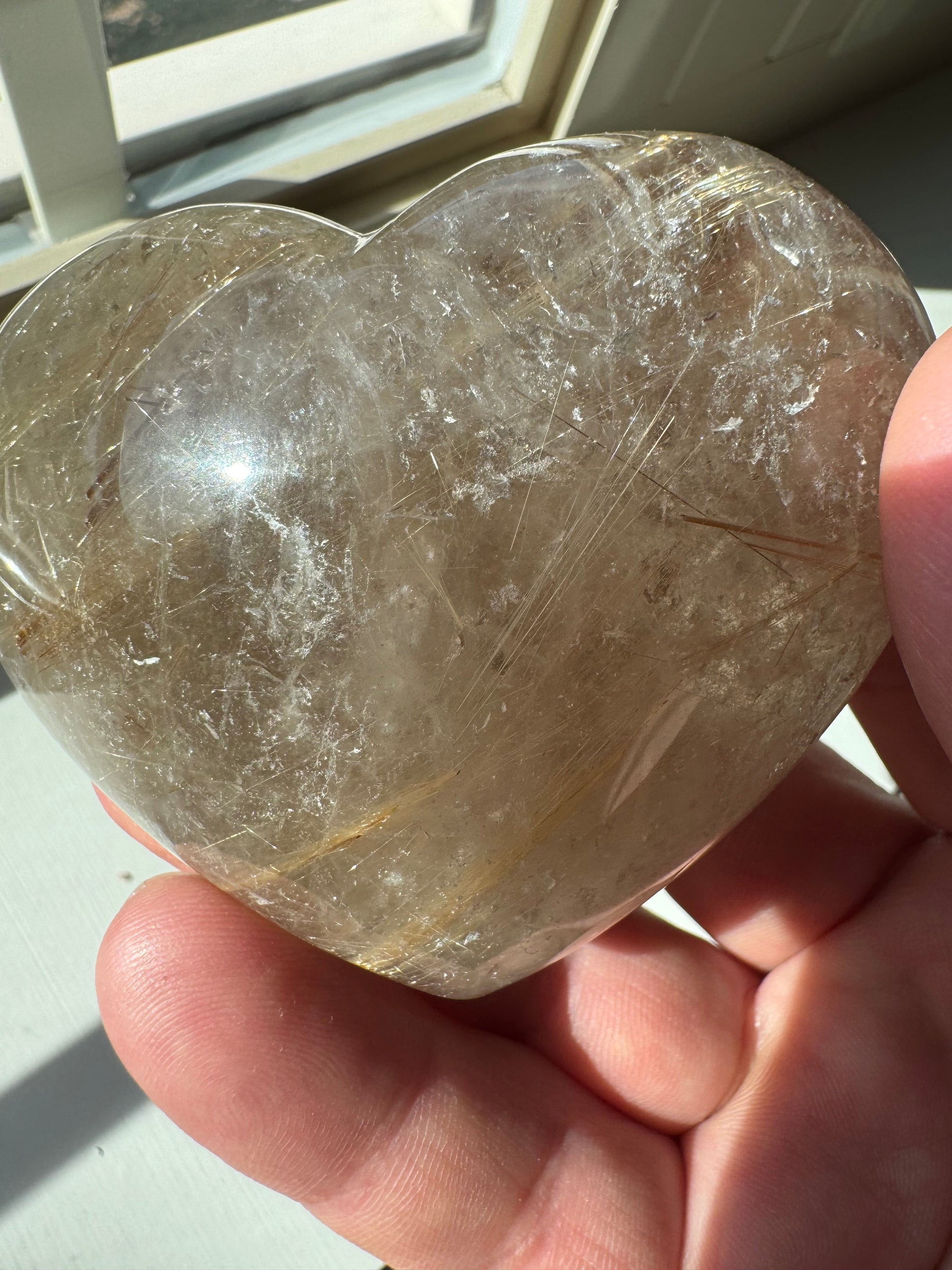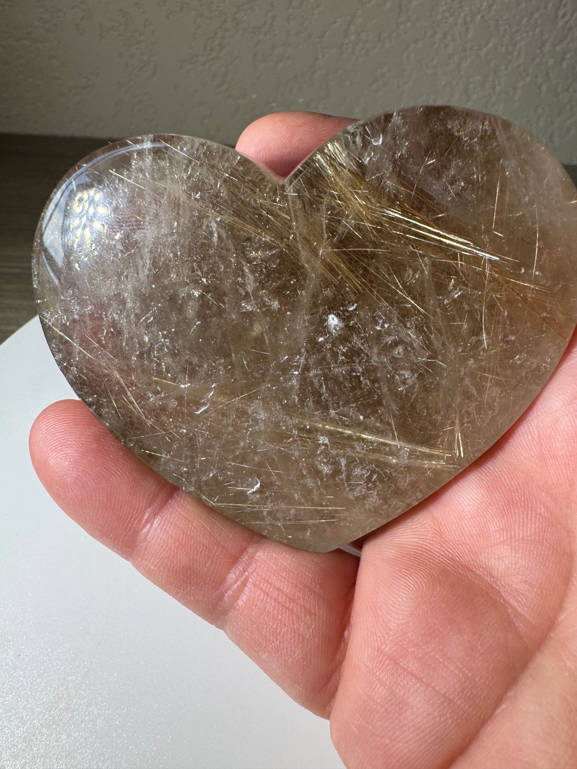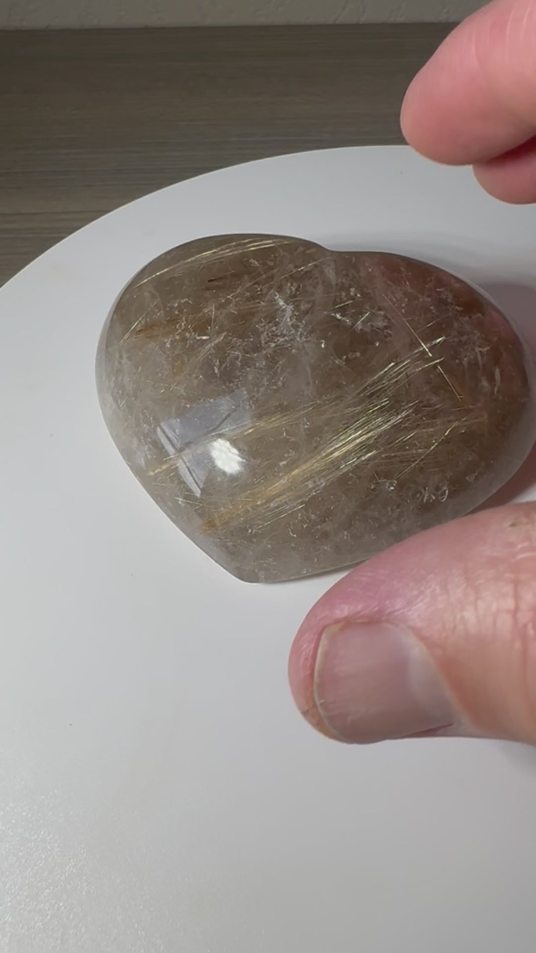 Discover the captivating beauty of this Rutilated Quartz Heart from Brazil. Each piece showcases unique golden needle-like inclusions that create a stunning visual effect, making it a perfect symbol of love and positive energy. Ideal for collectors or as a meaningful gift, this heart-shaped quartz combines natural elegance with powerful energy to inspire clarity and vitality in your life. Embrace the rare charm of Brazilian craftsmanship with this exquisite gemstone heart.