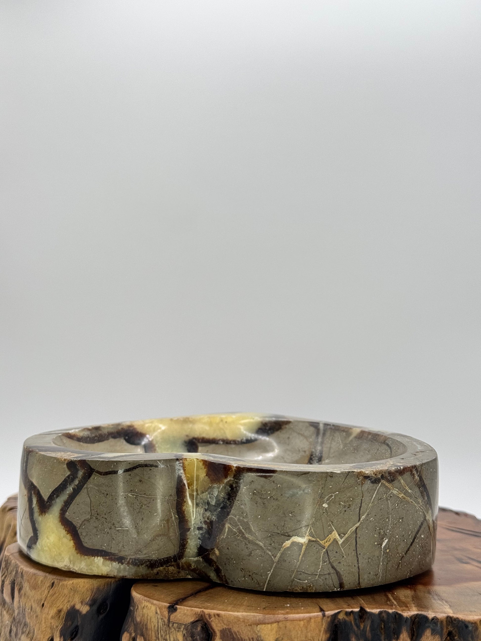 Indulge in the luxurious elegance of our Septarian Heart Bowl. Crafted from the finest septarian stone, this unique piece features a heart-shaped bowl that adds a touch of sophistication to any room. Its striking design and intricate details make it an exclusive addition to your collection. Elevate your decor with this truly one-of-a-kind masterpiece.