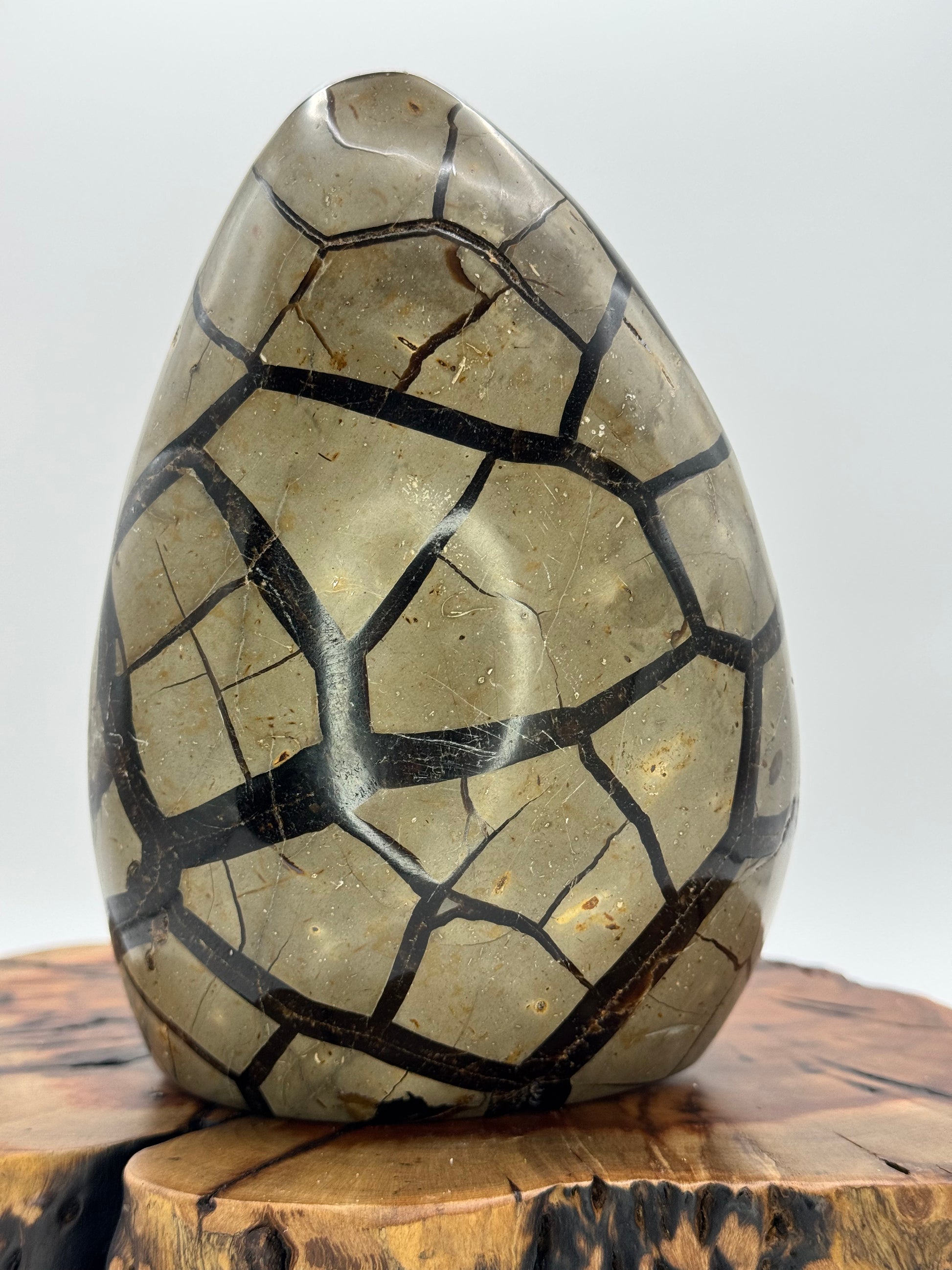 Introducing the Septarian Dragon Egg, a true marvel of nature. This unique stone formation, known for its striking texture and vibrant colors, is an exquisite addition to any collection. With its powerful energy and mysterious appearance, this dragon egg is sure to spark curiosity and elevate your space.