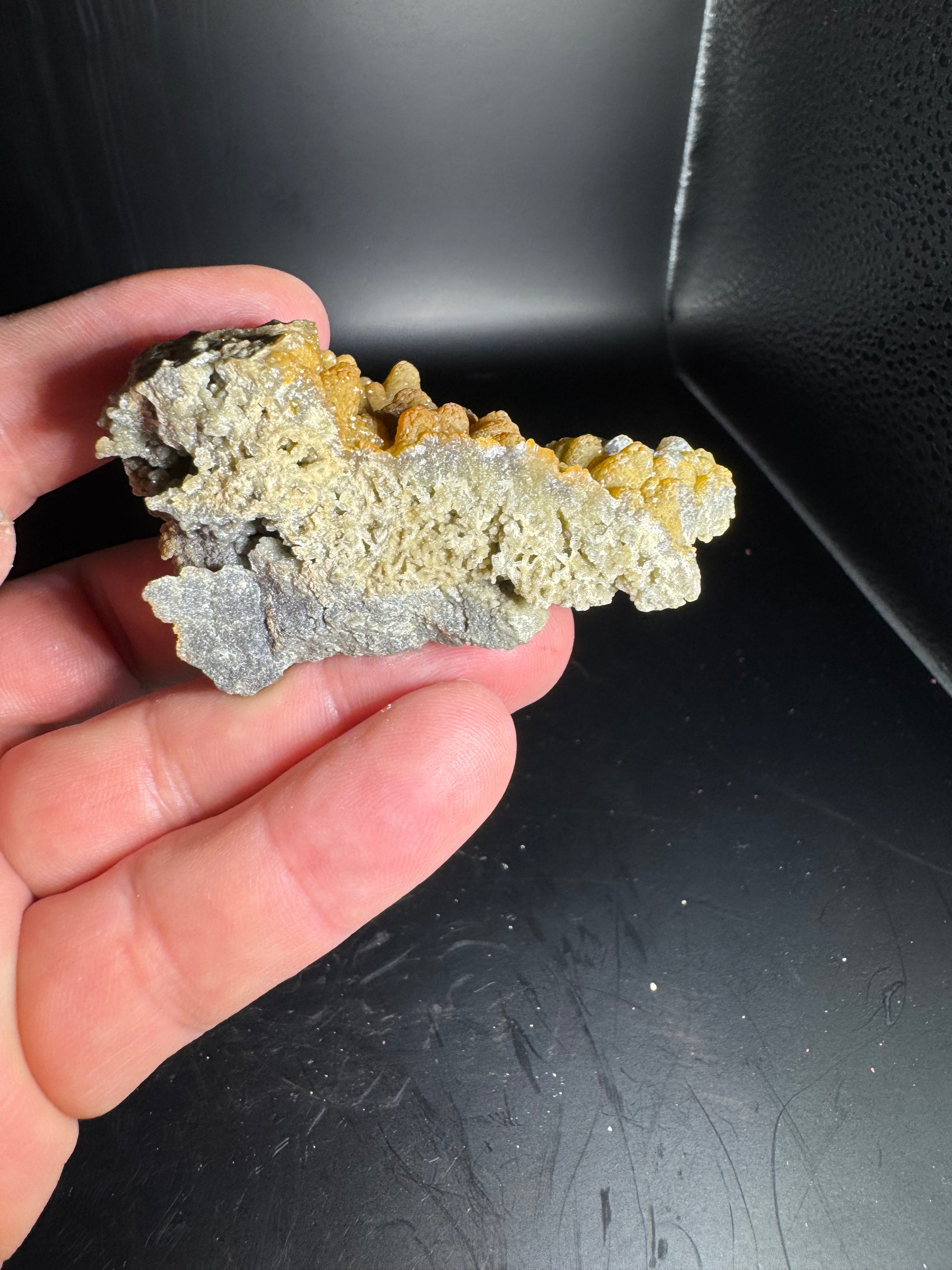 Discover the captivating blend of Smithsonite over Dog Tooth Calcite from the renowned La Ojuela mine in Mapimi, Durango, Mexico. Weighing 109 grams, this specimen showcases stunning mineral layering and natural beauty, making it an exceptional addition for collectors and enthusiasts. Its unique formation highlights the rich geological heritage of the region, offering both aesthetic appeal and a tangible connection to Earth's mineral artistry. Elevate your collection with this distinctive and eye-catching piece.
