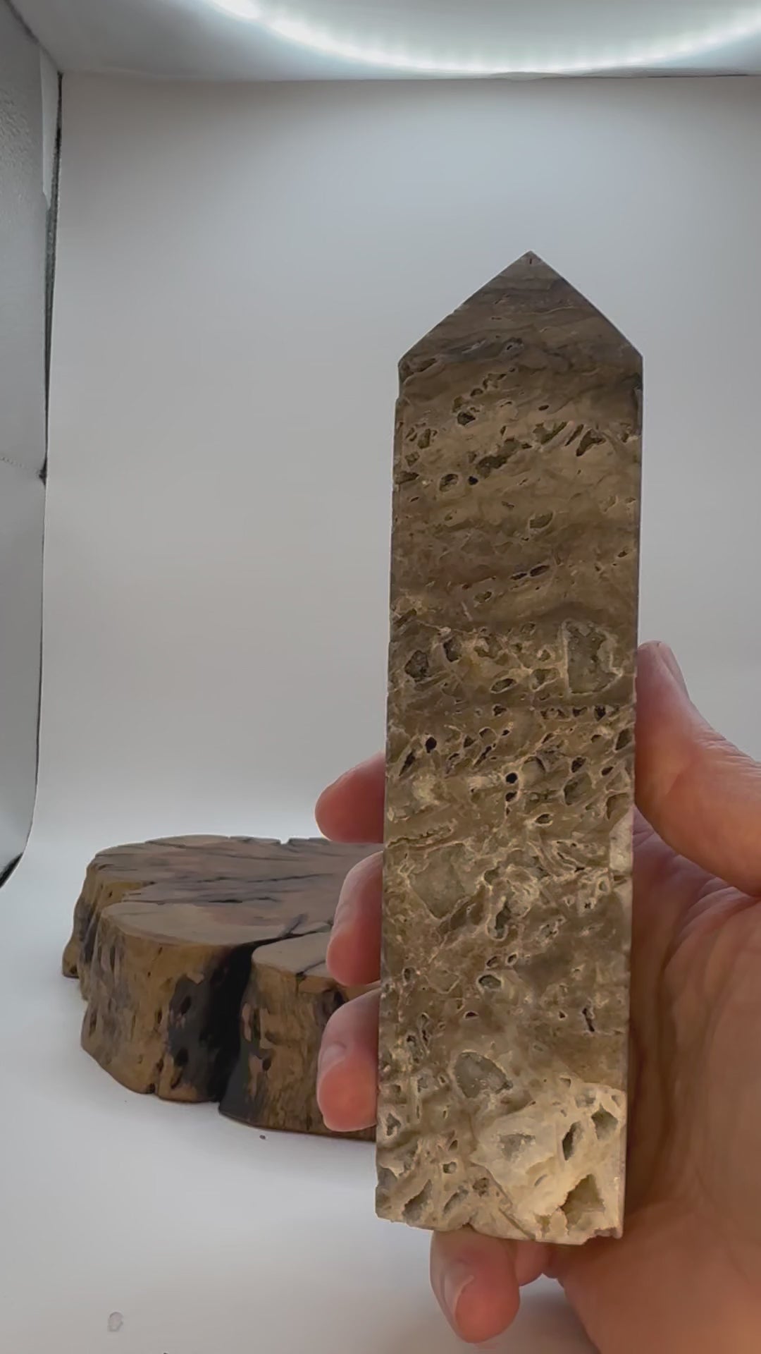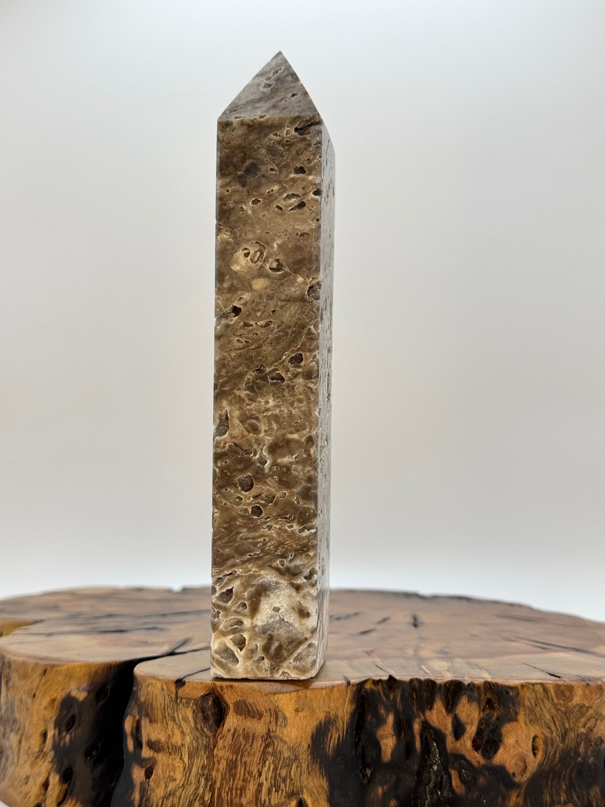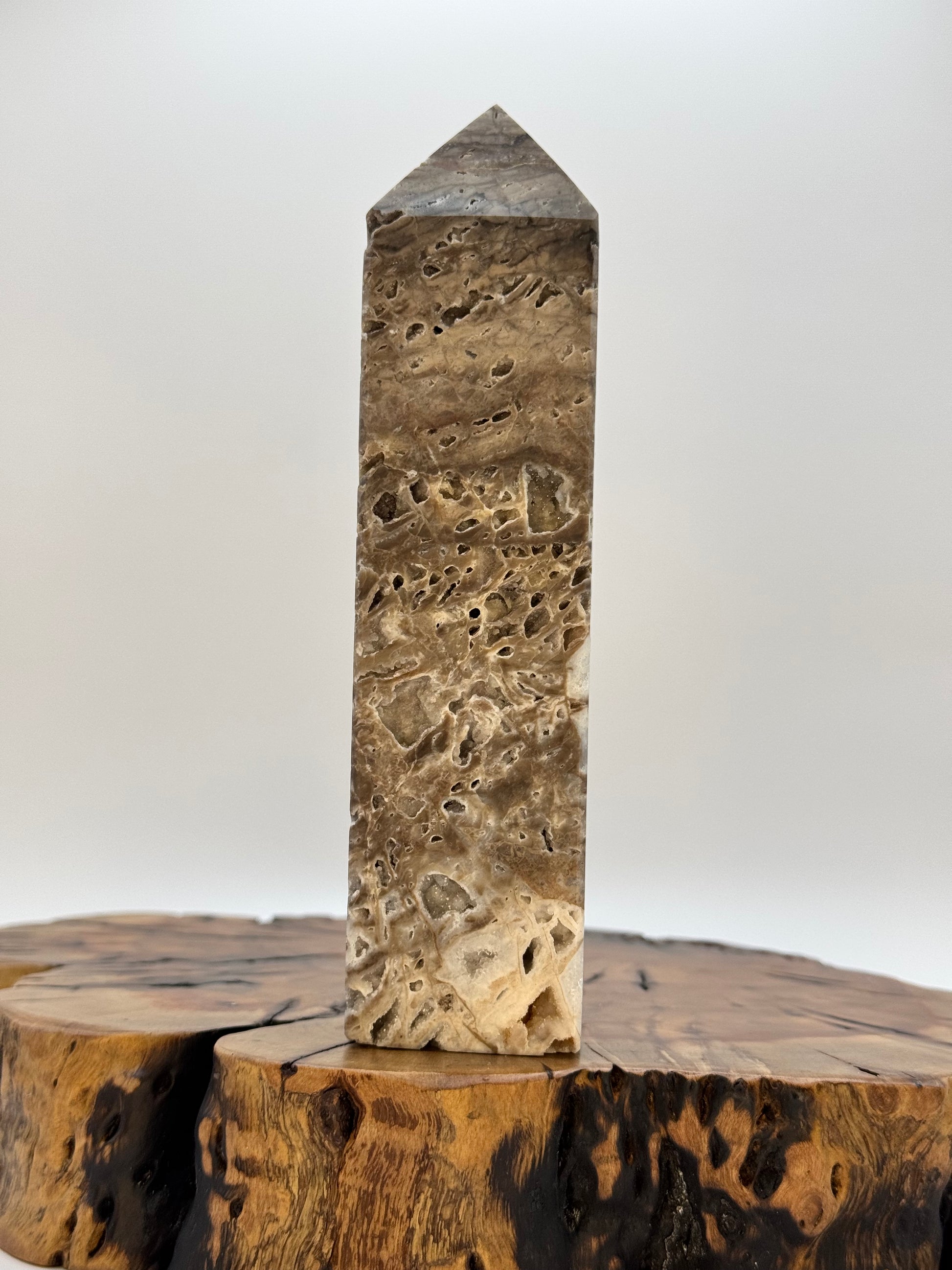 Experience the luxurious and exclusive energy of our Sphalerite Druzy Tower. The unique and stunning features of this crystal tower will elevate your space, bringing clarity and focus to your daily life. Embrace the beauty and power of this premium product, perfect for those who seek a sophisticated and elegant touch in their surroundings.