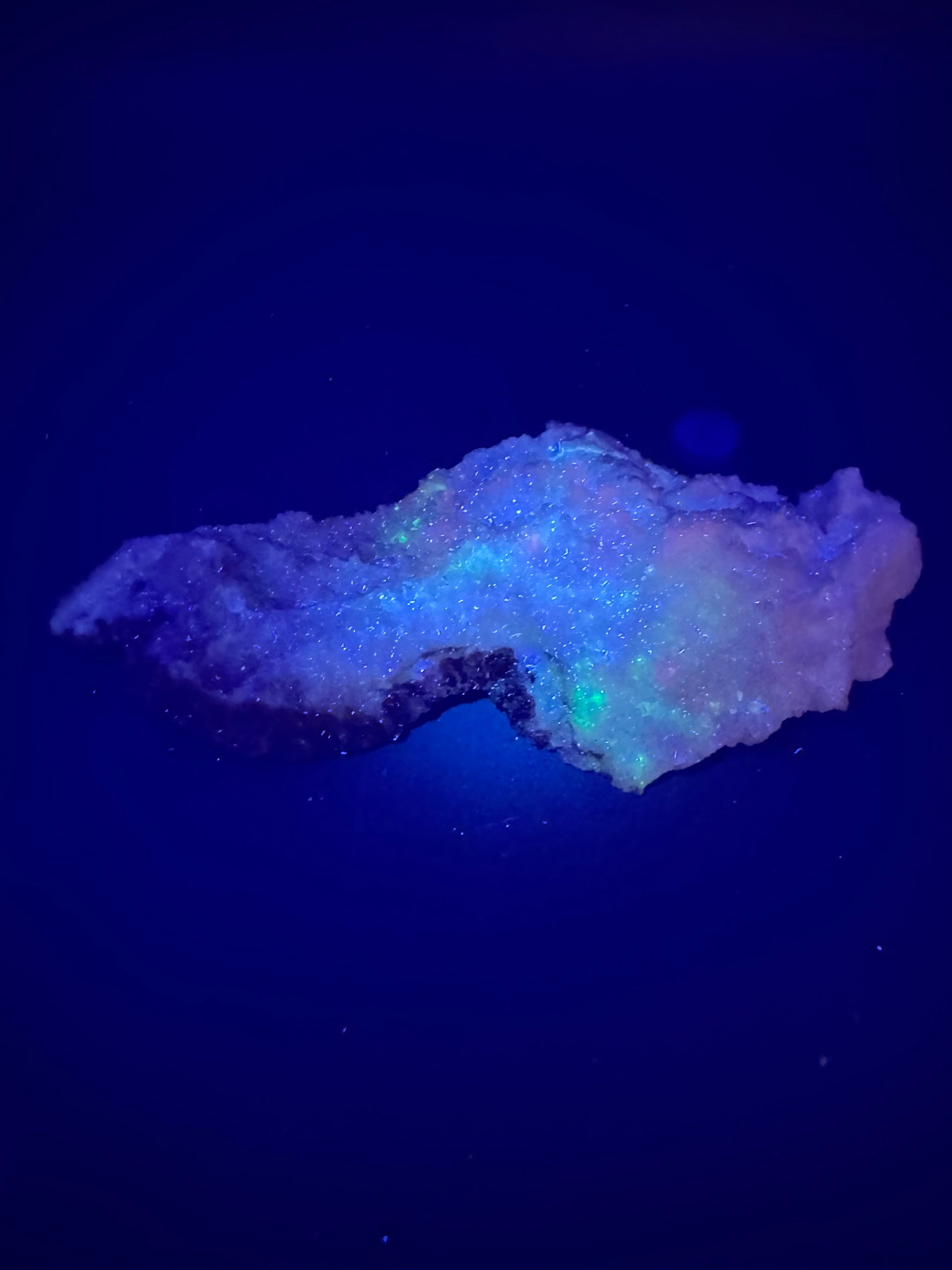 Discover the captivating beauty of this UV reactive, multi-colored Grateful Dead Calcite from the renowned La Ojuela mine in Mapimi, Durango, Mexico. Weighing 87 grams, this unique specimen glows vibrantly under UV light, showcasing a stunning array of colors that make it a remarkable addition to any collection. Perfect for mineral enthusiasts and collectors seeking a rare and visually striking piece, this calcite combines natural artistry with fascinating luminescent properties. Elevate your collection with this extraordinary treasure from one of Mexico’s most famous mineral sites.