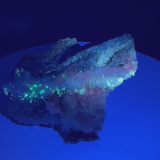 Discover the captivating beauty of this UV reactive, multi-colored Grateful Dead Calcite from the renowned La Ojuela mine in Mapimi, Durango, Mexico. Weighing 207 grams, this unique specimen glows vibrantly under UV light, showcasing a stunning array of colors that make it a remarkable addition to any collection. Perfect for mineral enthusiasts and collectors seeking a rare and visually striking piece, this calcite combines natural artistry with fascinating luminescent properties. Elevate your collection with this extraordinary treasure from one of Mexico’s most famous mineral sites.