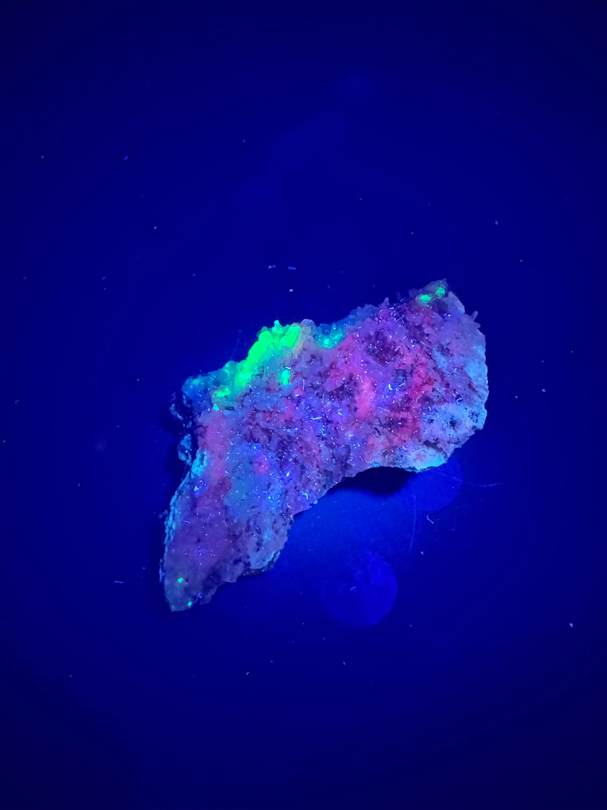 Discover the captivating beauty of this UV reactive, multi-colored Grateful Dead Calcite from the renowned La Ojuela mine in Mapimi, Durango, Mexico. Weighing 28 grams, this unique specimen glows vibrantly under UV light, showcasing a stunning array of colors that make it a remarkable addition to any collection. Perfect for mineral enthusiasts and collectors seeking a rare and visually striking piece, this calcite combines natural artistry with fascinating luminescent properties. Elevate your collection with this extraordinary treasure from one of Mexico’s most famous mineral sites.