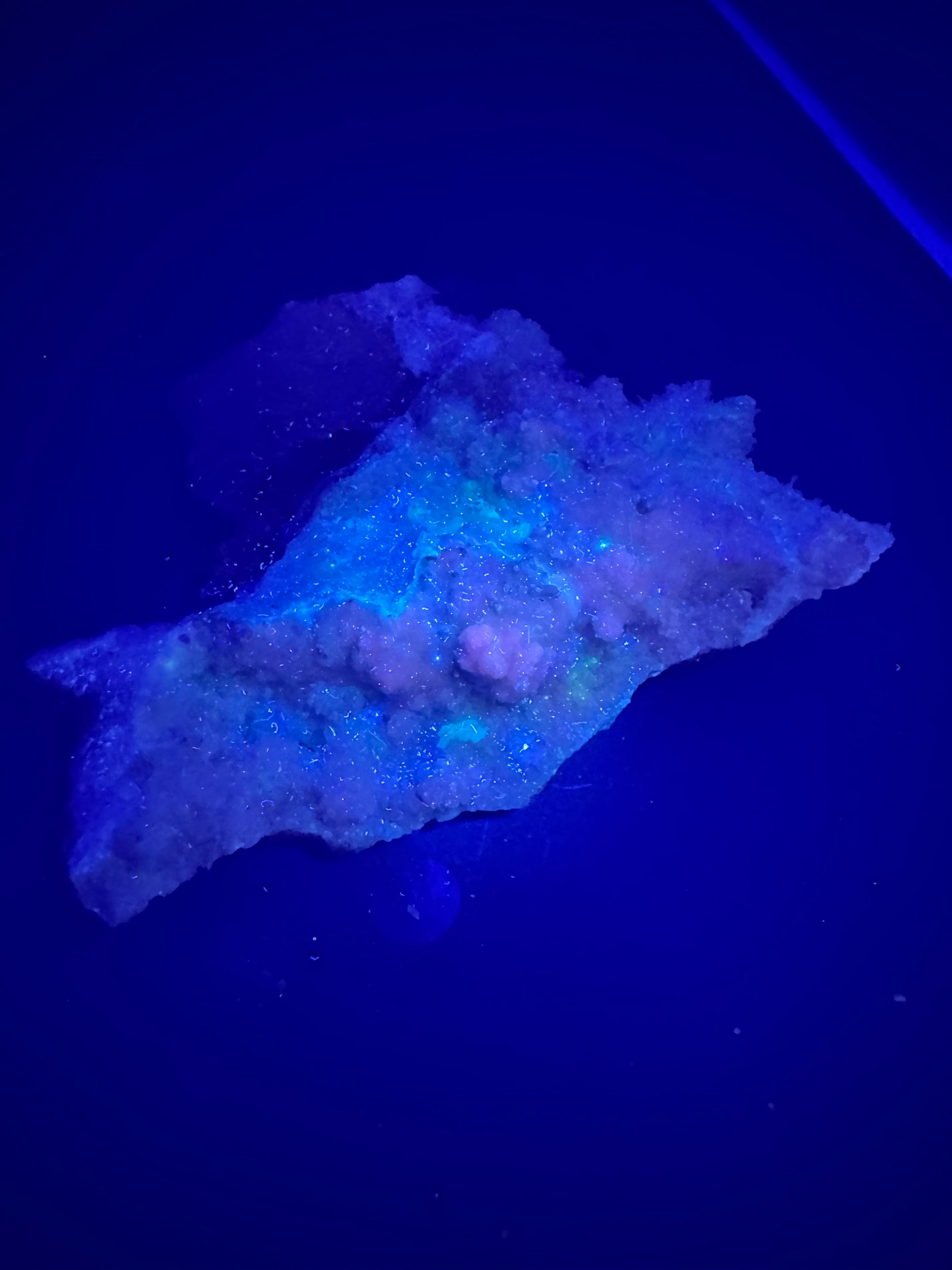 Discover the captivating beauty of this UV reactive, multi-colored Grateful Dead Calcite from the renowned La Ojuela mine in Mapimi, Durango, Mexico. Weighing 239 grams, this unique specimen glows vibrantly under UV light, showcasing a stunning array of colors that make it a remarkable addition to any collection. Perfect for mineral enthusiasts and collectors seeking a rare and visually striking piece, this calcite combines natural artistry with fascinating luminescent properties. Elevate your collection with this extraordinary treasure from one of Mexico’s most famous mineral sites.